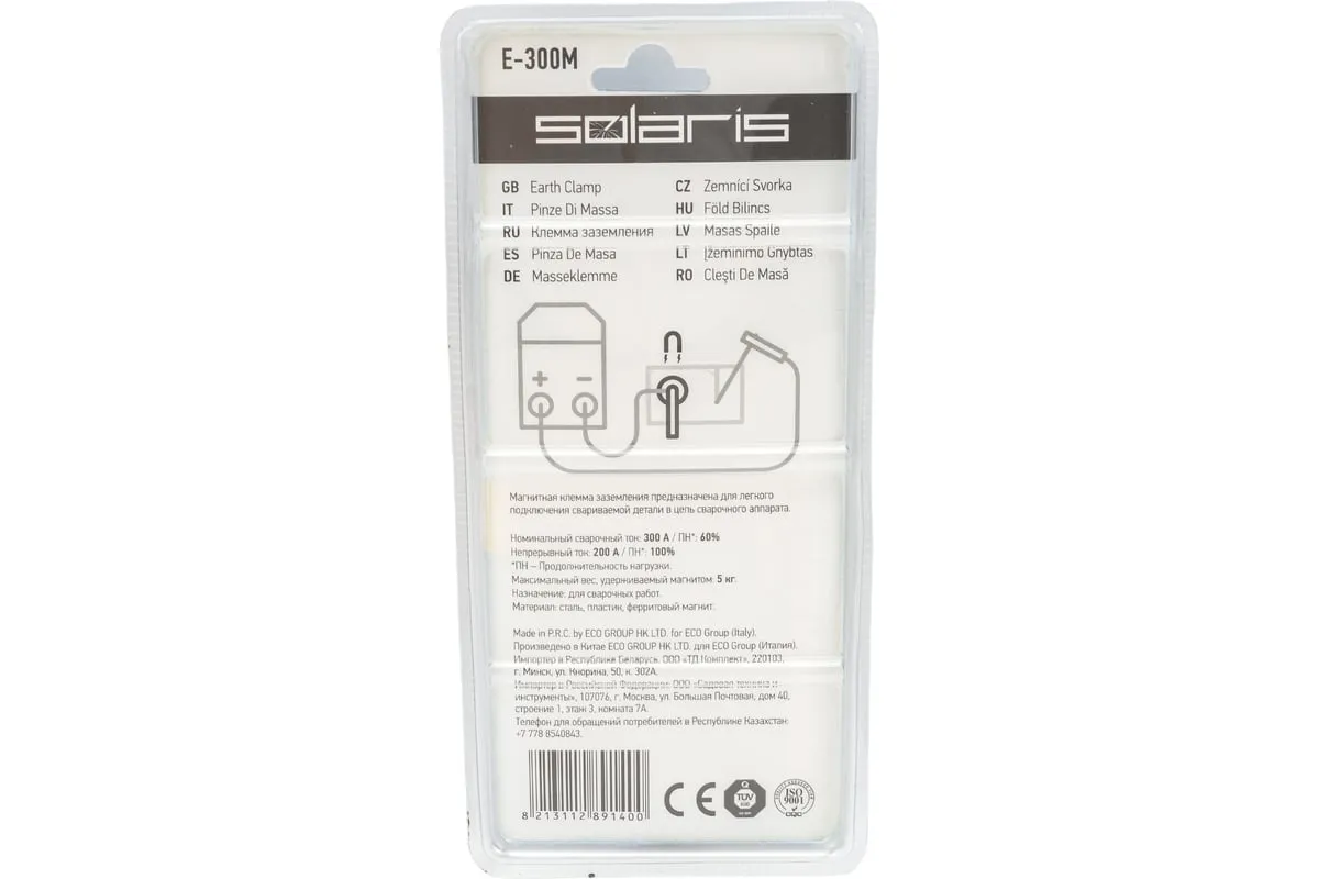 Клемма заземления SOLARIS E-300M с магнитным зажимом предназначена для подключения кабеля массы сварочного аппарата к свариваемой детали. За счет магнита клемму легко присоединить к металлическим поверхностям разных форм и размеров.