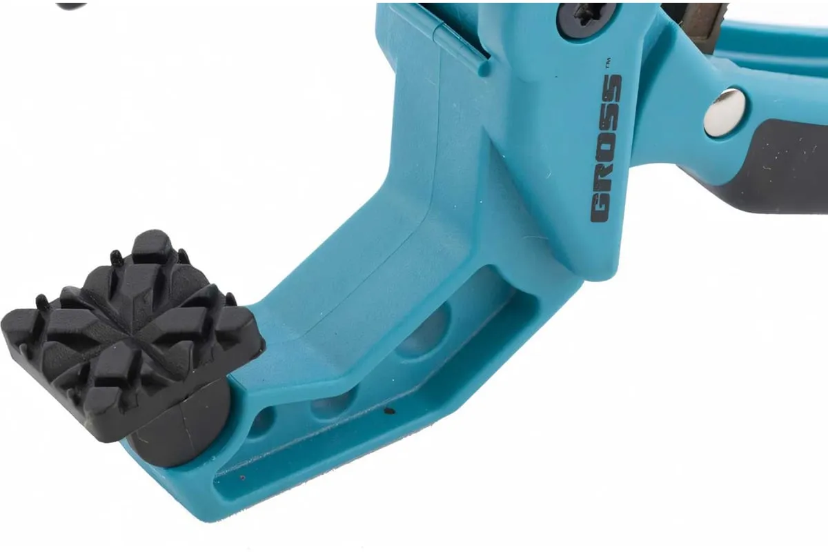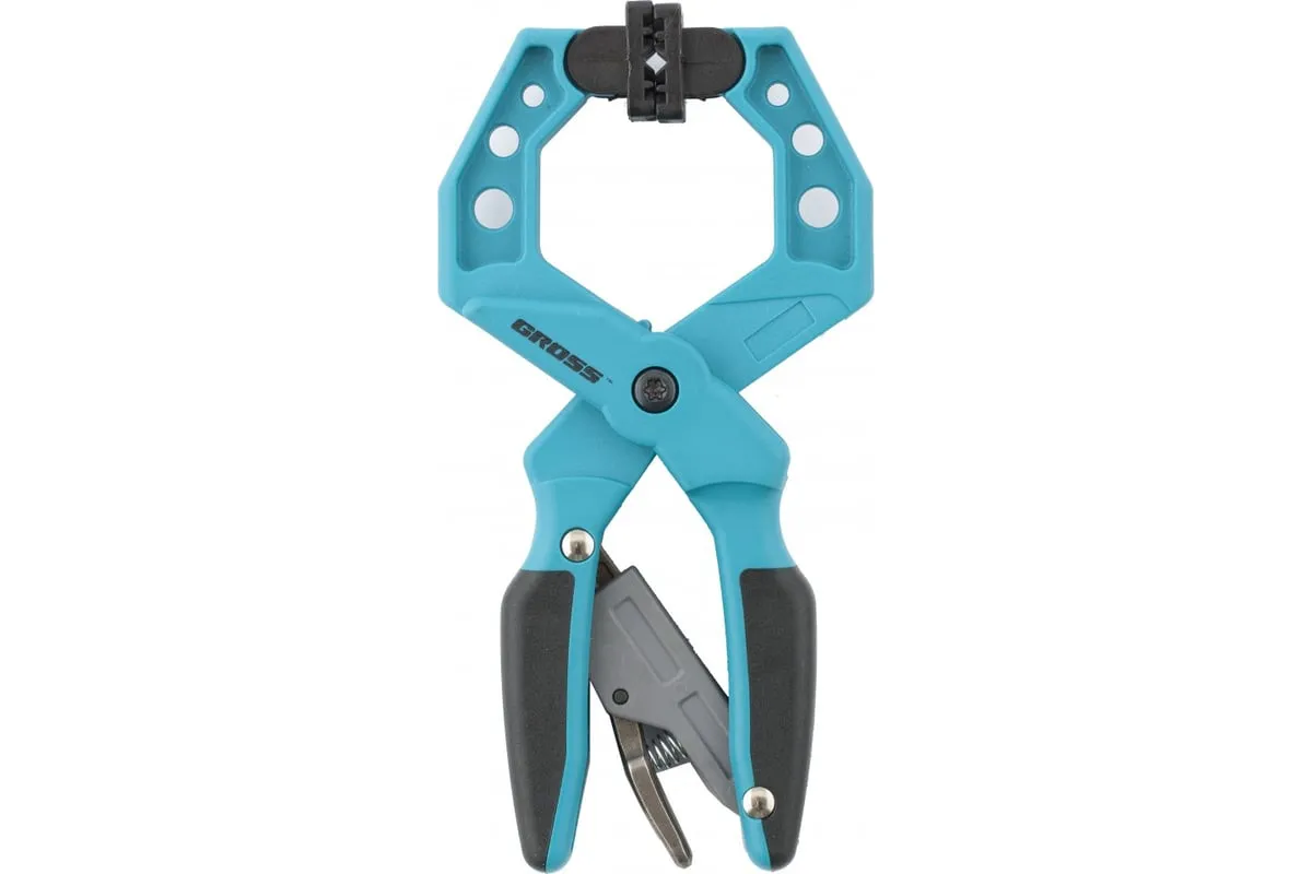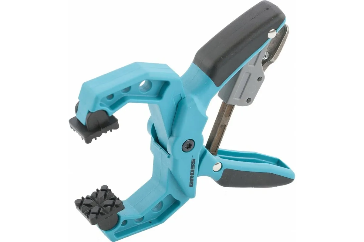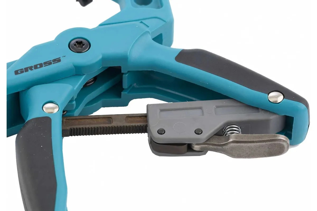 Клещеобразная струбцина Gross 20803 в пластиковом корпусе, с храповым механизмом жесткой фиксации, используется для фиксирования деталей толщиной 2-1/4 дюйма / 58 мм при их скреплении и обработке. Позволяет зажимать и удерживать заготовки из древесины и других материалов. Благодаря надежному металлическому храповому механизму губки жестко фиксируют предметы, что отличает данную модель от струбцин прищепочного типа на пружинах. Инструмент предназначен для профессионального использования.