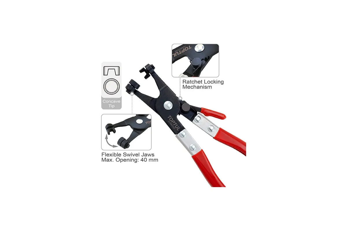 Захватная часть клещей TOPTUL имеет вращающуюся структуру и позволяет захватывать хомут под любым удобным углом.