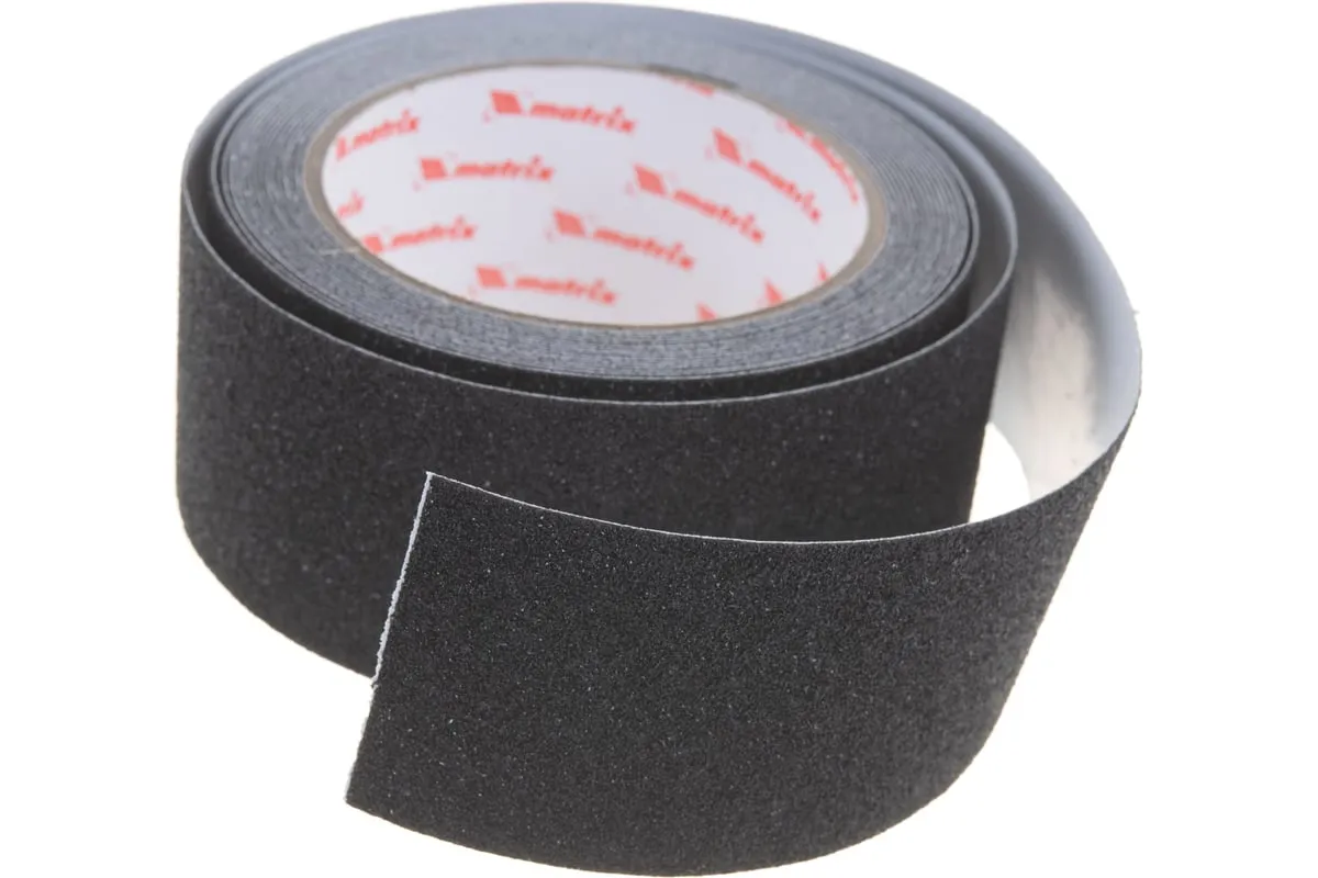 Клейкая противоскользящая лента Matrix 88707 черного цвета, шириной 50 мм и длиной 5 м, позволяет снизить риск получения травм на лестницах, кафеле и других скользких поверхностях. Пригодится в помещениях с большой посещаемостью: общественных зданиях, многоквартирных домах, бассейнах и др. Благодаря прочному клеевому составу лента крепится на любые поверхности: ламинат, кафель и т. д. Ленту следует монтировать при температуре выше +12 ℃ на предварительно очищенную сухую поверхность.