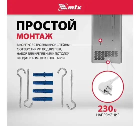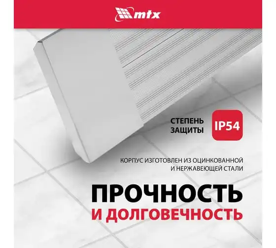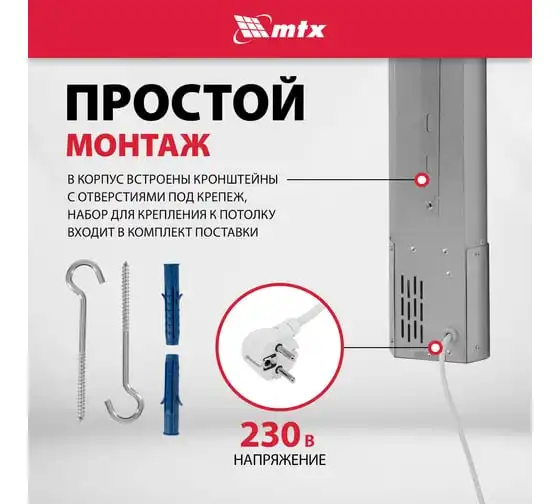 Инфракрасный обогреватель MTX IH-1500, 230В, 1500 Вт, IP54, кабель с вилкой 1,8 м 98702