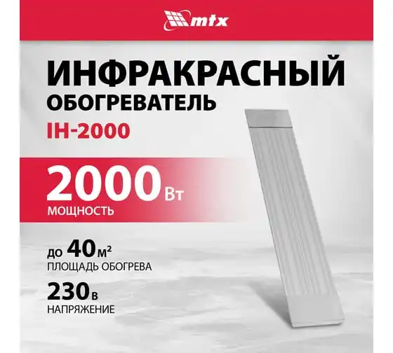 Инфракрасный обогреватель MTX IH-2000, 230В, 2000 Вт, IP54, кабель с вилкой 1,8 м 98703