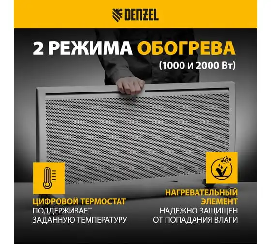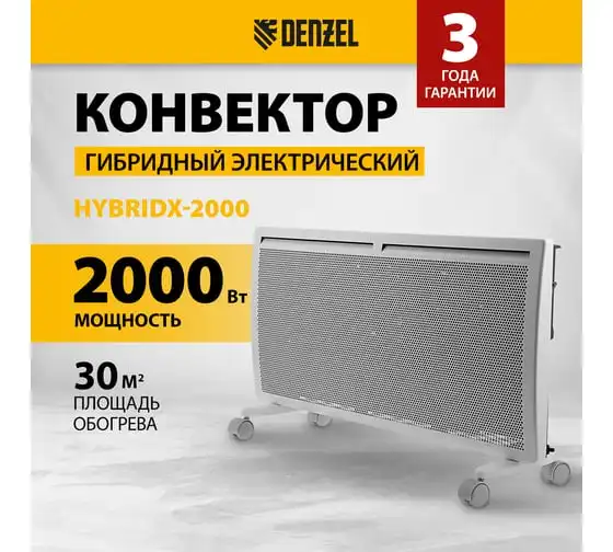 Гибридный электрический конвектор Denzel hybridx-2000, ик нагреватель, цифровой термостат 98120