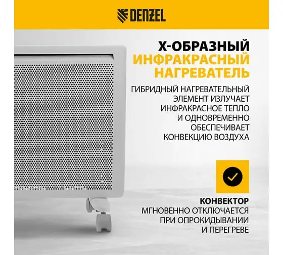 Гибридный электрический конвектор Denzel hybridx-1500, ик нагреватель, цифровой термостат 98119