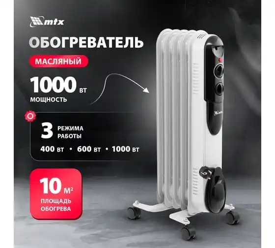 Масляный обогреватель MTX och-1000, 230 в, 1000 вт 98301