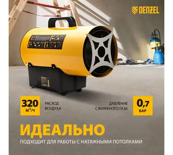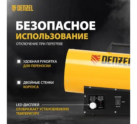 Газовая тепловая пушка Denzel ghg-15i, 15 квт, цифровой термостат, пропан-бутан 96478