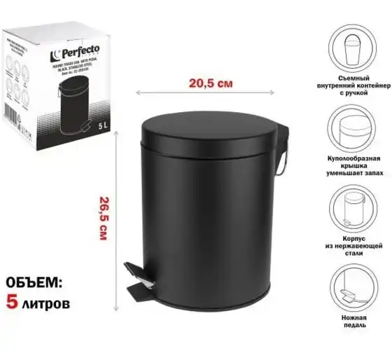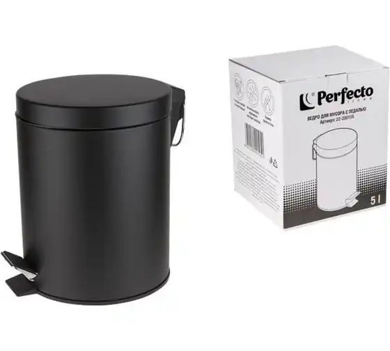 Ведро для мусора с педалью PERFECTO LINEA 5 л, черное, сталь, 22-202105