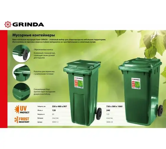 Мусорный контейнер GRINDA МК-240 с колёсами, 240 л 3840-24