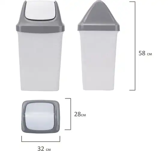 Ведро-контейнер для мусора IDEA Свинг 25 л, с крышкой (качающейся), 58x32x28 см, серое, М 2463 602549