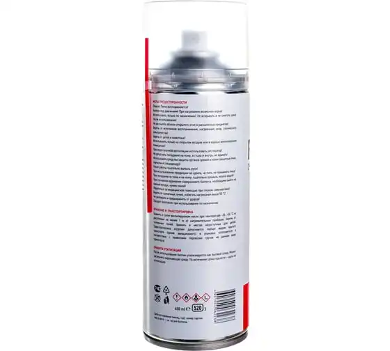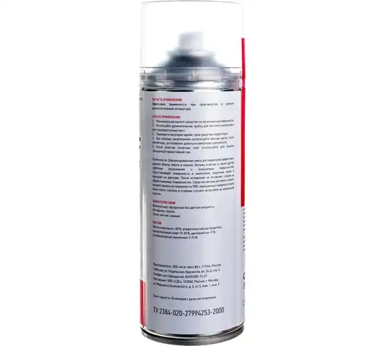 Метоксипропанол >30%, алифатический растворитель изопропиловый спирт 15-30% дихлорметан <5%, углеводородный пропелент 5-15% (