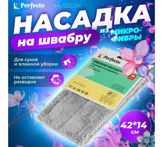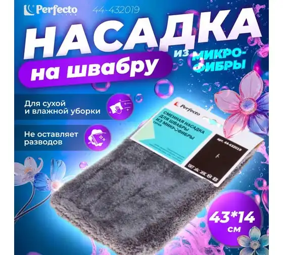 Сменная насадка для швабры из микрофибры PERFECTO LINEA полоса чистоты 44-433011