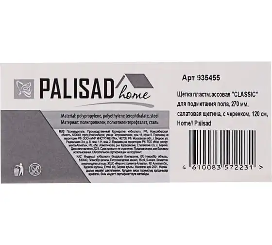 Пластмассовая щетка для подметания PALISAD Home с комбинированной щетиной, 27 см, с черенком 120 cм 935645
