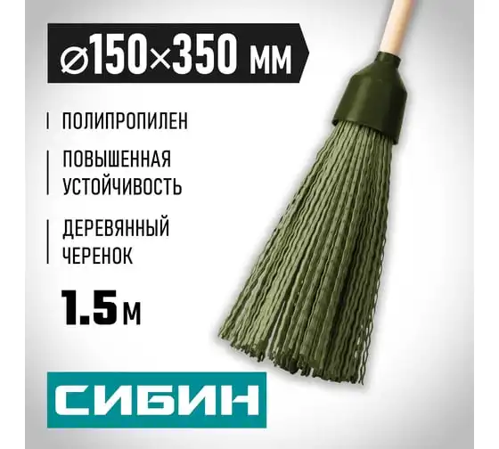Круглая пластиковая метла на деревянном черенке СИБИН 350x150 мм 39225-1