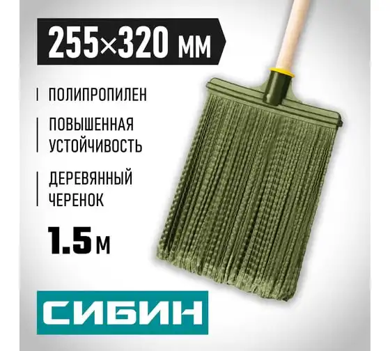 Метла полипропиленовая универсальная СИБРТЕХ 1550x140x310 мм, круглая, с черенком Россия 63217