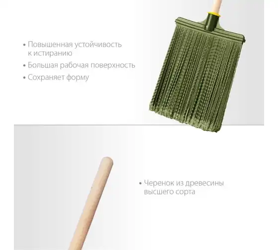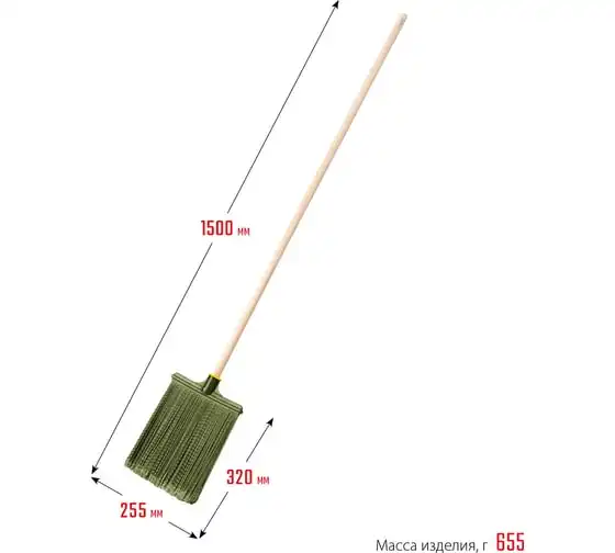 Плоская пластиковая метла на деревянном черенке СИБИН 320x255 мм, распушенная, гибкая 39224-1