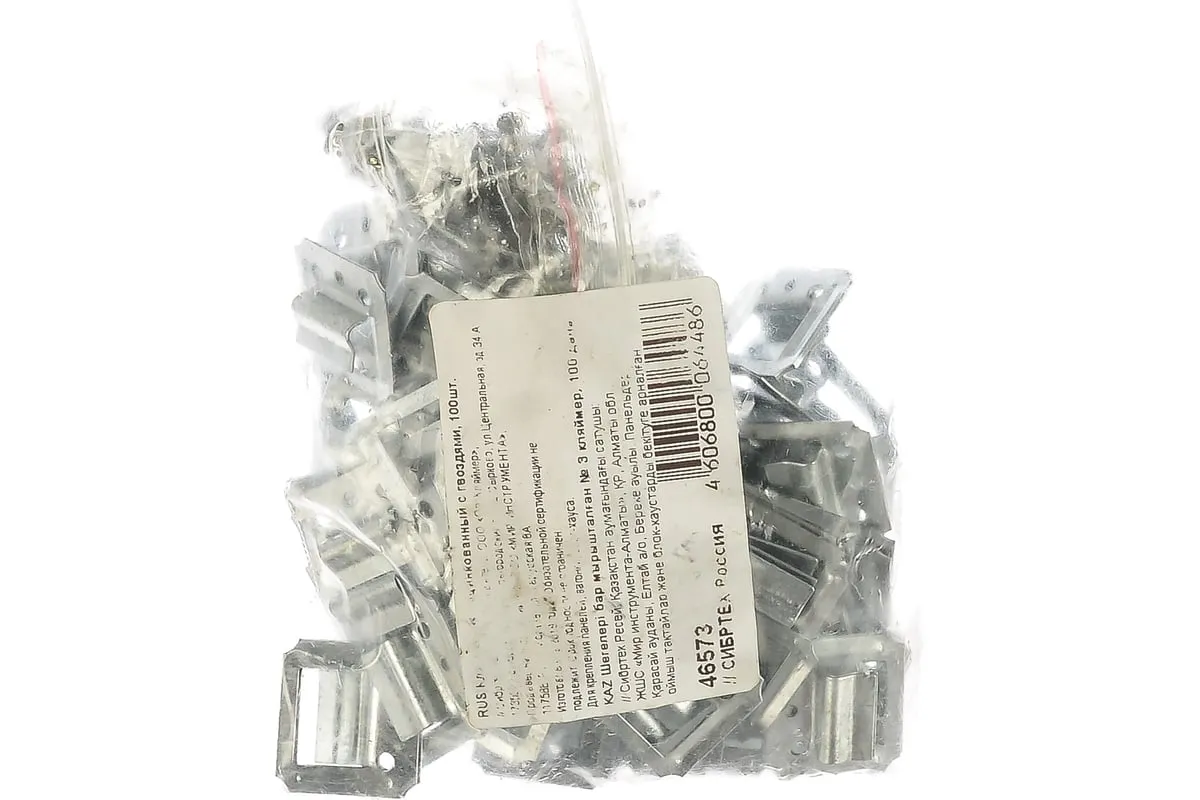 Оцинкованный кляймер №3 Сибртех 46573, с гвоздями, - крепежный элемент, применяющийся при отделке стен виниловой вагонкой, блок-хаусом или МДФ-панелями. Обеспечивает скрытое крепление, т.к. не виден снаружи и не портит внешний вид отделочного покрытия. Кляймер используется при строительстве домов и ремонте помещений.