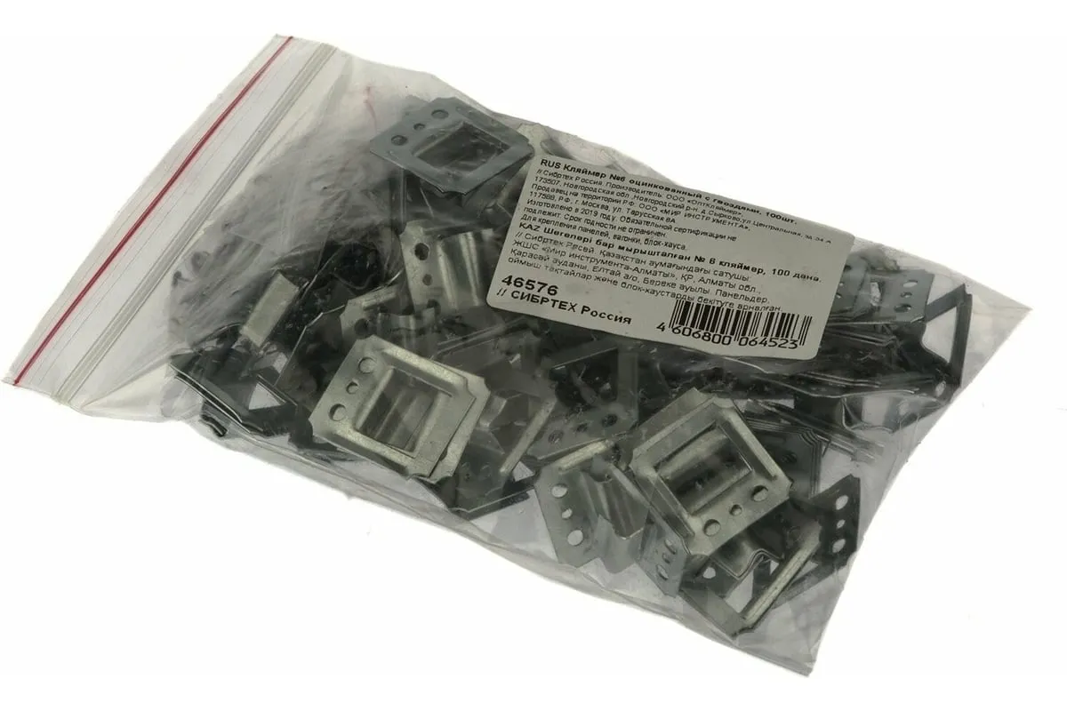 Оцинкованный кляймер №6 Сибртех 46576, с гвоздями, - крепежный элемент, применяющийся при отделке стен виниловой вагонкой, блок-хаусом или МДФ-панелями. Обеспечивает скрытое крепление, т.к. не виден снаружи и не портит внешний вид отделочного покрытия. Кляймер используется при строительстве домов и ремонте помещений.