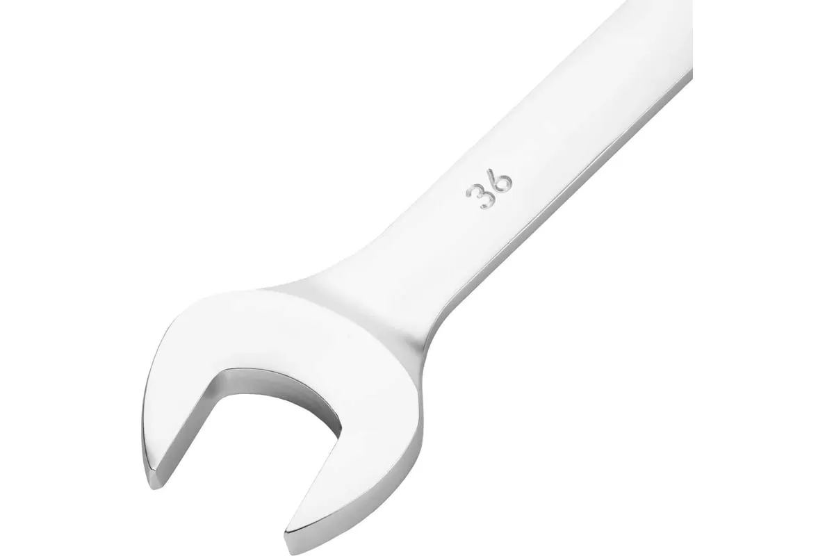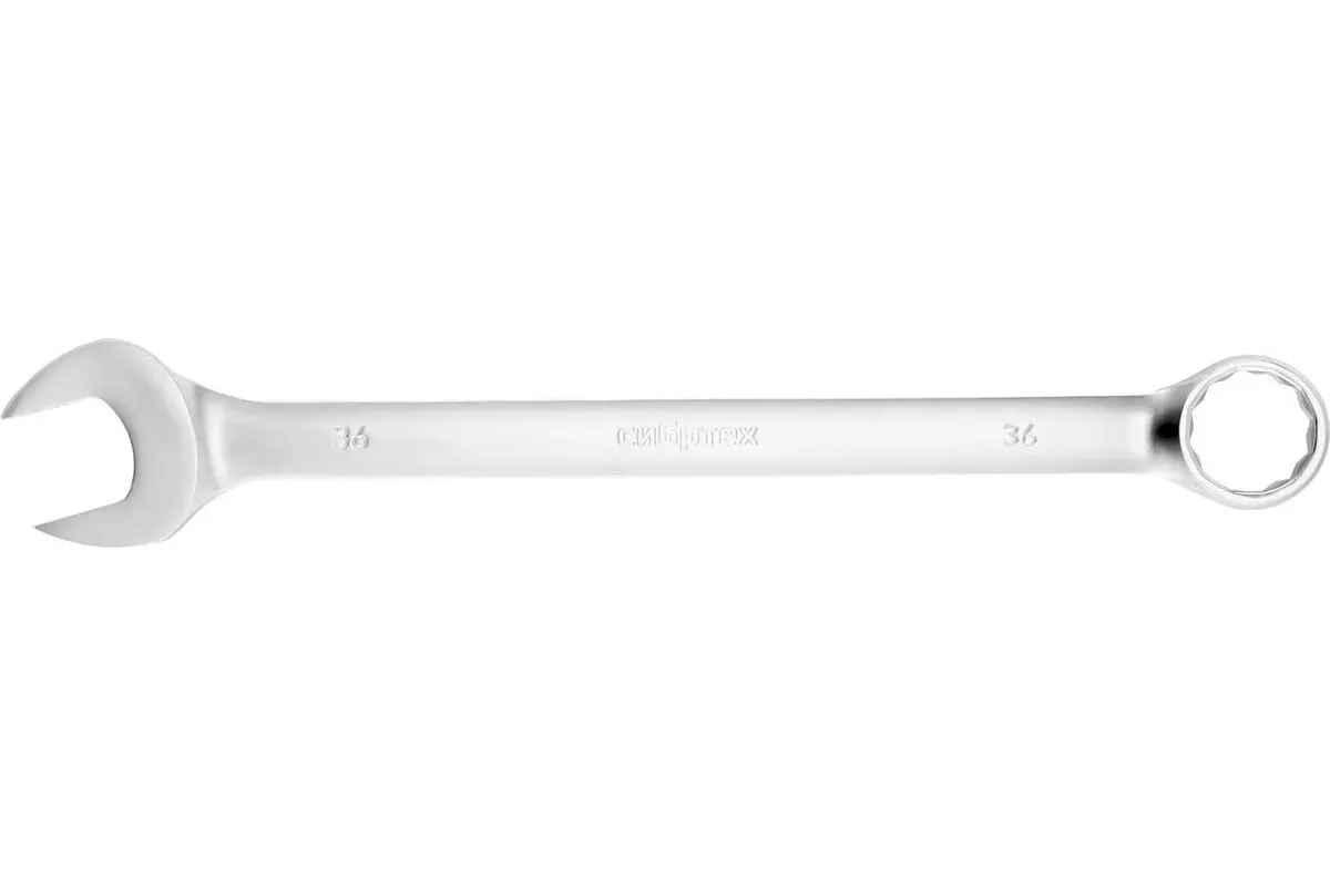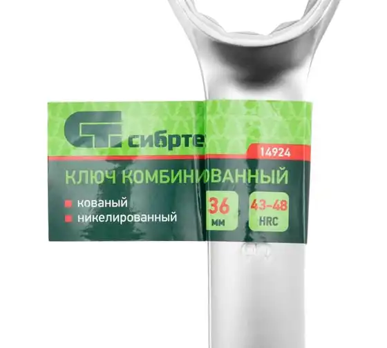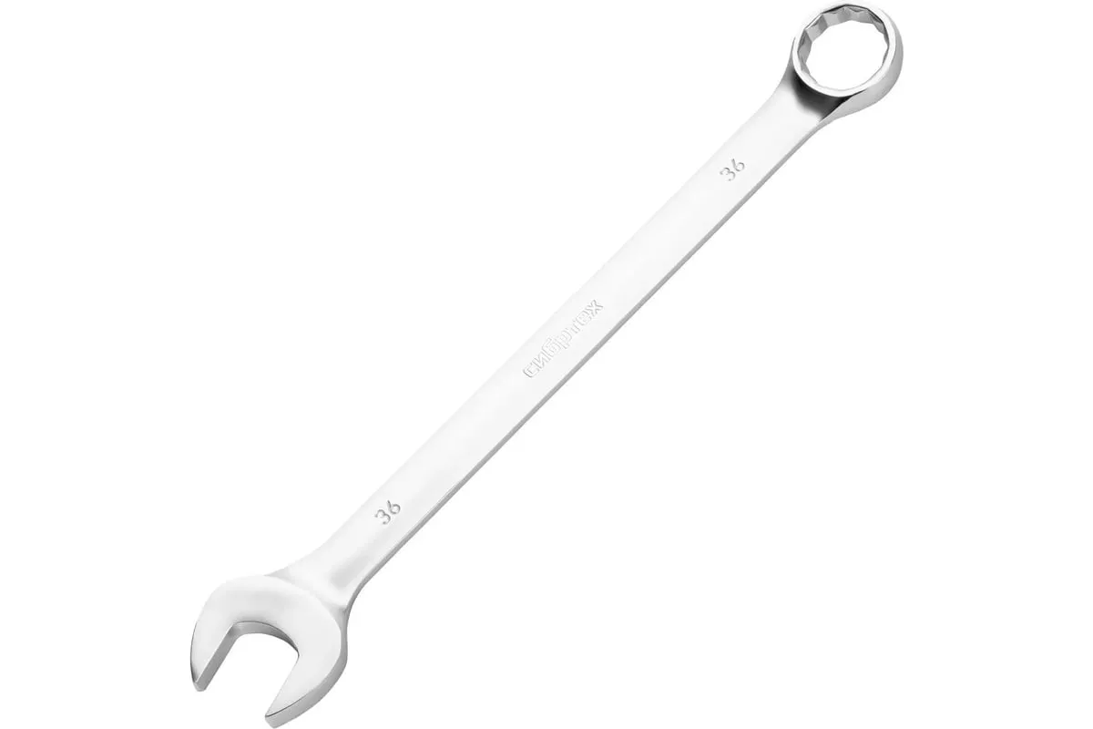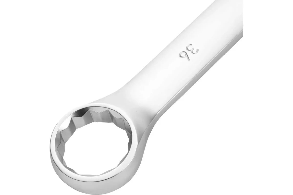 Комбинированный ключ Сибртех 14924 с никелированной поверхностью используется для работы с резьбовым крепежом размером 36 мм. Две рабочие части (рожковая и накидная) расширяют возможности применения инструмента. Кольцевой зев с 12 гранями подходит для работы с болтами и гайками как с шестигранным, так и с двенадцатигранным профилем. Инструмент применяется в автосервисах, на производстве, в строительстве и других сферах, где требуется монтаж крупного резьбового соединения. Преимущества