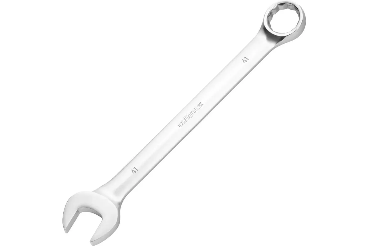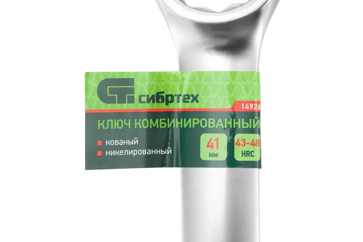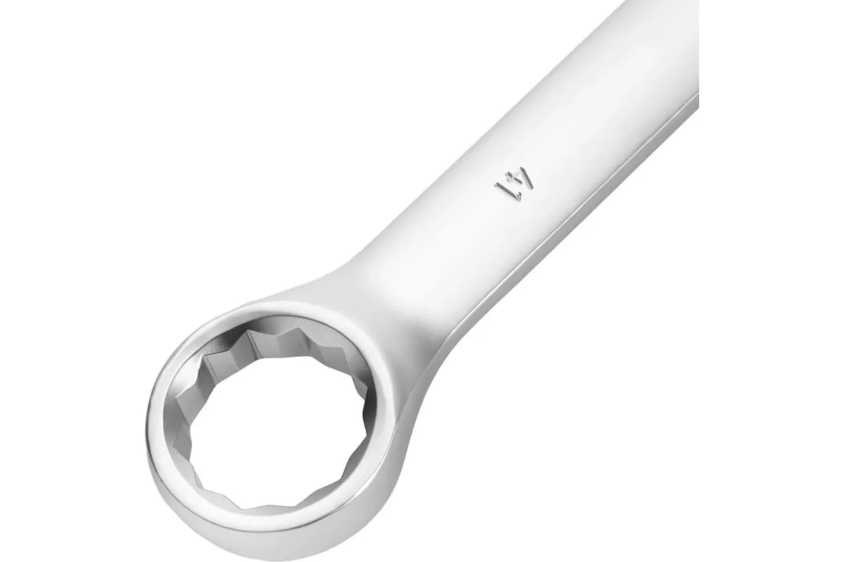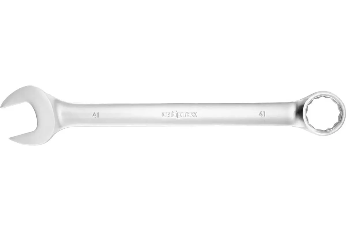 Комбинированный ключ Сибртех 14926 с никелированной поверхностью используется для работы с резьбовым крепежом размером 41 мм. Две рабочие части (рожковая и накидная) расширяют возможности применения инструмента. Кольцевой зев с 12 гранями подходит для работы с болтами и гайками как с шестигранным, так и с двенадцатигранным профилем. Инструмент применяется в автосервисах, на производстве, в строительстве и других сферах, где требуется монтаж крупного резьбового соединения. Преимущества