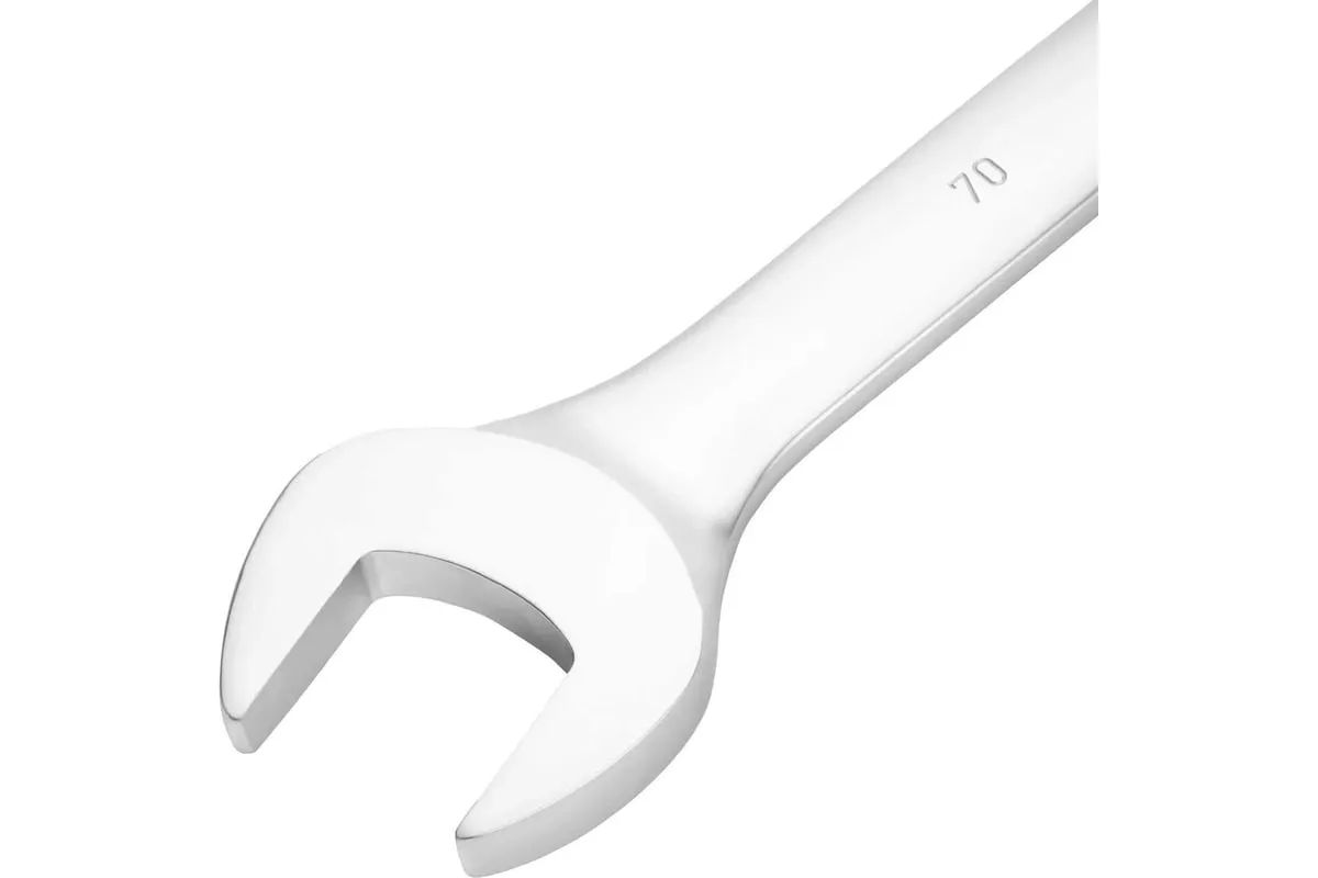 Комбинированный ключ Сибртех 14932 с никелированной поверхностью используется для работы с резьбовым крепежом размером 70 мм. Две рабочие части (рожковая и накидная) расширяют возможности применения инструмента. Кольцевой зев с 12 гранями подходит для работы с болтами и гайками как с шестигранным, так и с двенадцатигранным профилем. Инструмент применяется в автосервисах, на производстве, в строительстве и других сферах, где требуется монтаж крупного резьбового соединения. Преимущества