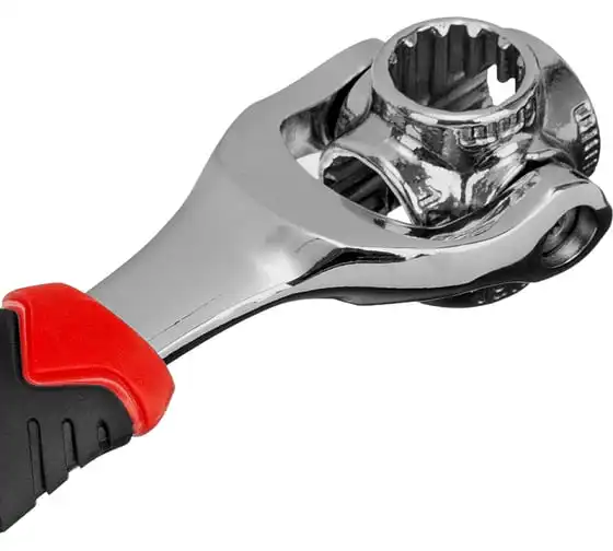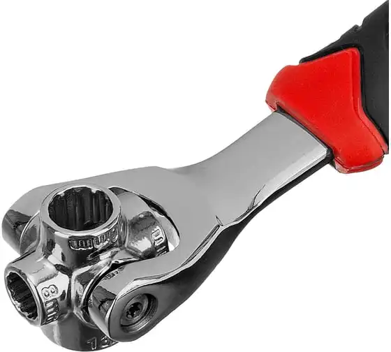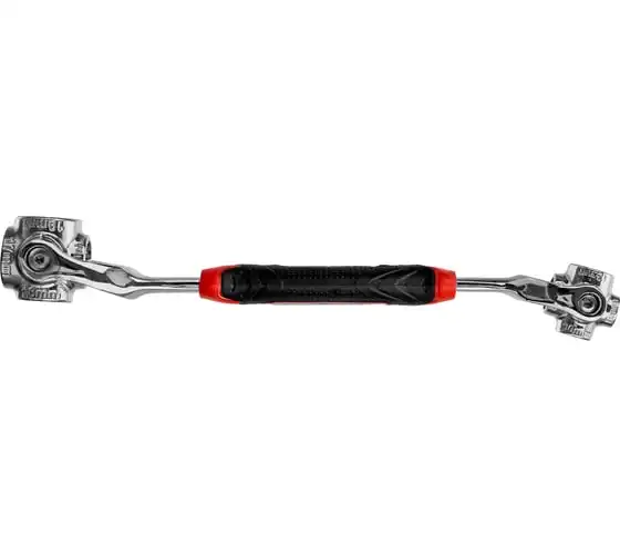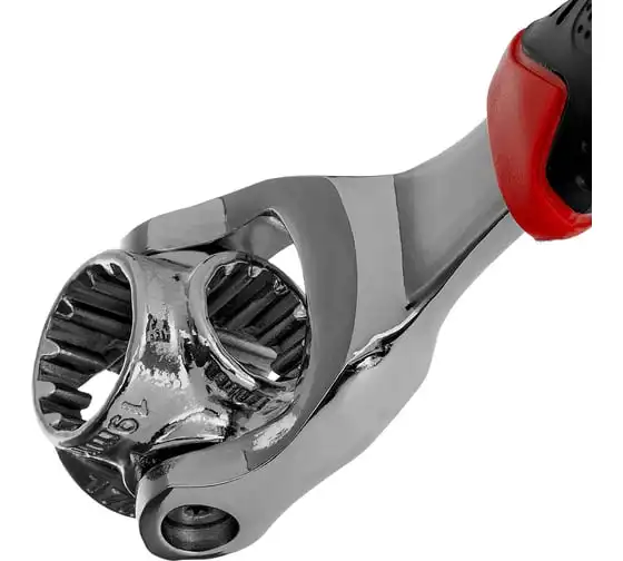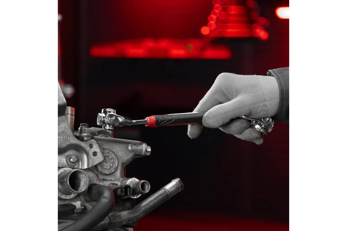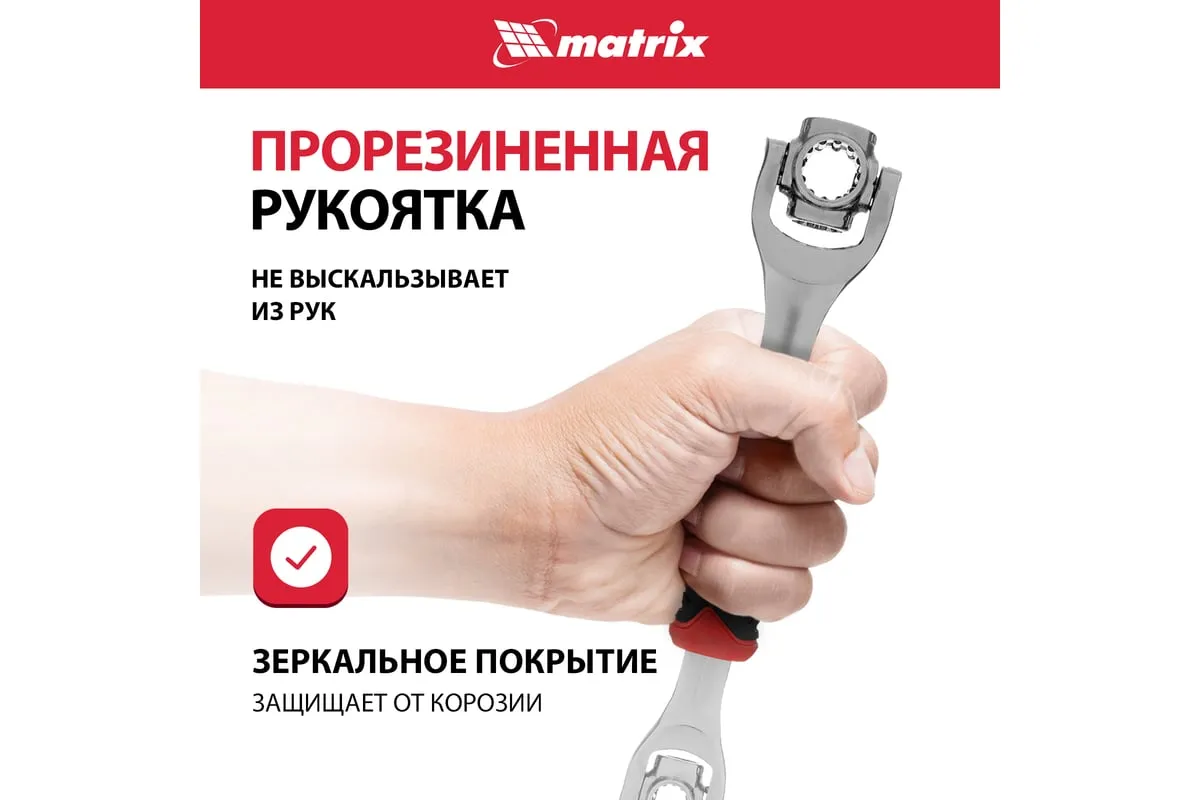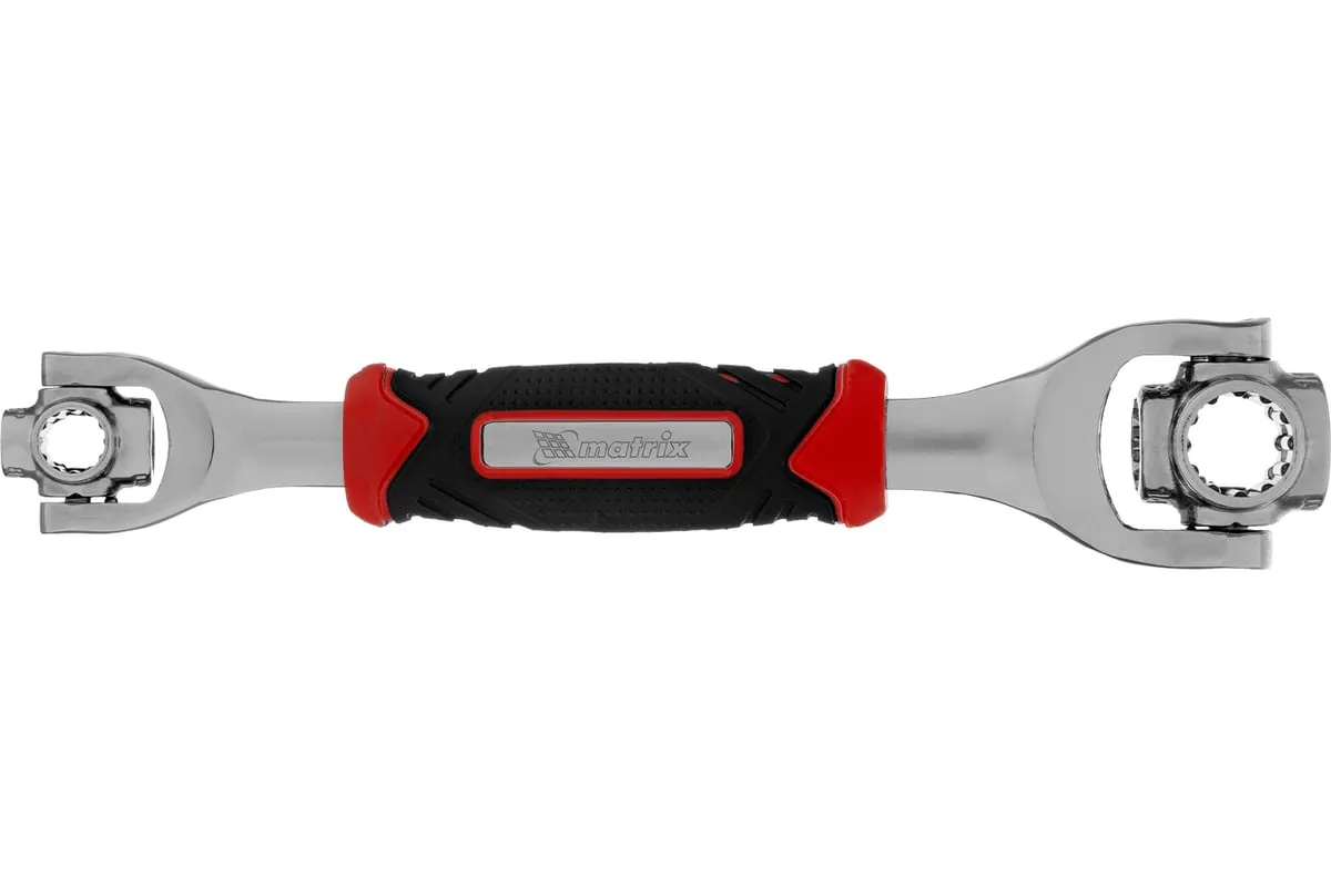 Ключ универсальный 48 в 1 Matrix 14999 из стали CrV имеет 8 размеров головок: 8 мм, 10 мм, 11 мм, 13 мм, 14 мм, 16 мм, 17 мм, 19 мм. Подходит для различных профилей: 6-гранных, 8-гранных, 12-гранных, Square, Torx, Spline. Предназначен для монтажа и демонтажа болтовых соединений. Поворот головки на 360° и угол наклона 45° позволяют работать в труднодоступных местах. Конструкция головки позволяет закручивать и откручивать крепежи на высоких шпильках.