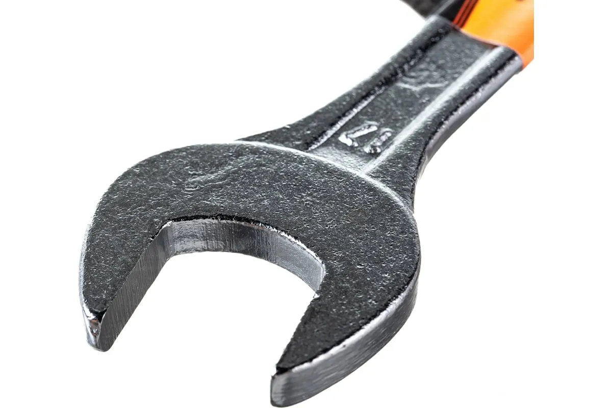 Хромированный рожковый ключ 13х17 мм SPARTA 144515 используется при ремонте и обслуживании различной техники или конструкций, где применяются резьбовые соединения с шестигранным типом крепежа. Ключ с двух сторон имеет открытые U-образные рабочие головки. Инструмент выполнен из прочной углеродистой стали и покрыт хромом для избежания появления коррозии.