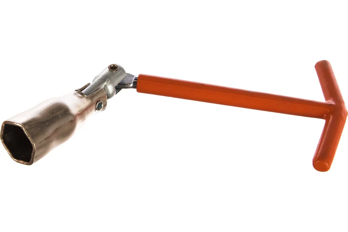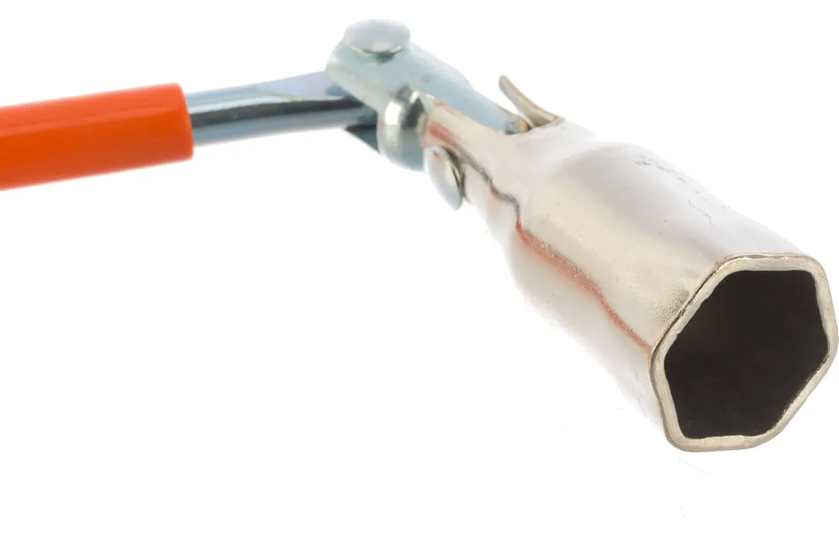 Свечной ключ с шарниром 21 мм SPARTA 138405 изготовлен из углеродистой стали с защитным цинковым покрытием. Двойной шарнир обеспечивает удобный угол наклона инструмента и при необходимости увеличивает плечо его вращения. Резиновая вставка внутри рабочего профиля позволяет удерживать свечу зажигания при ее извлечении из корпуса двигателя.
