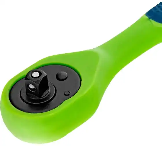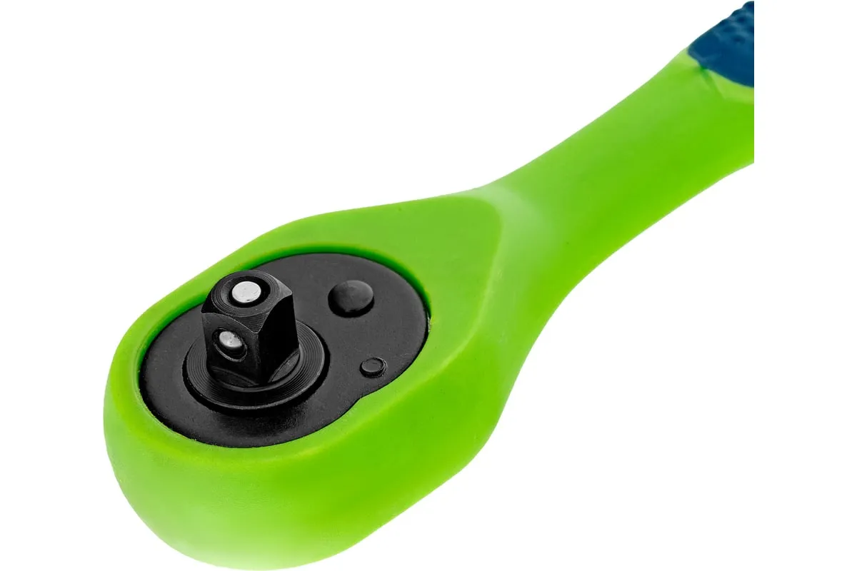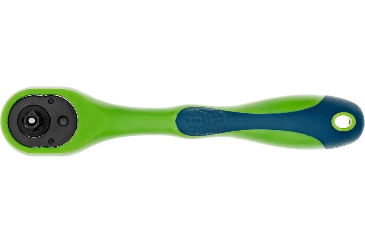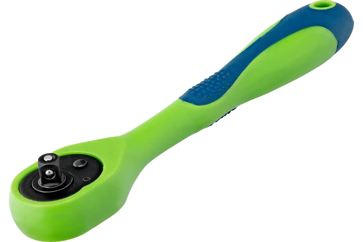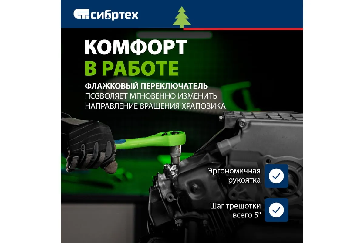 Ключ-трещотка Сибртех 14007 с двухкомпонентной рукояткой и присоединительным квадратом 1/4" используется с торцевыми головками, имеющими посадочное гнездо соответствующего размера. Предназначен для закручивания и раскручивания резьбовых соединений. Храповой механизм с 72 зубцами обеспечивает плавное вращение. Ключ применяется для ремонта автомобилей, техники и оборудования, а также пригодится дома или на даче.