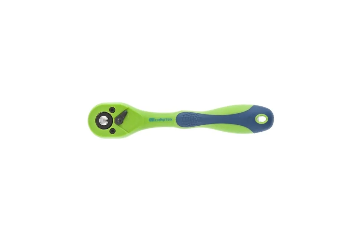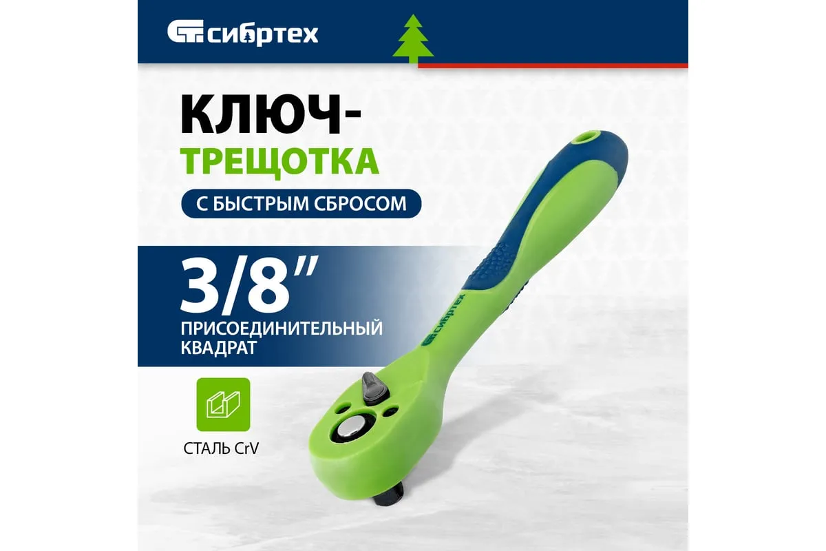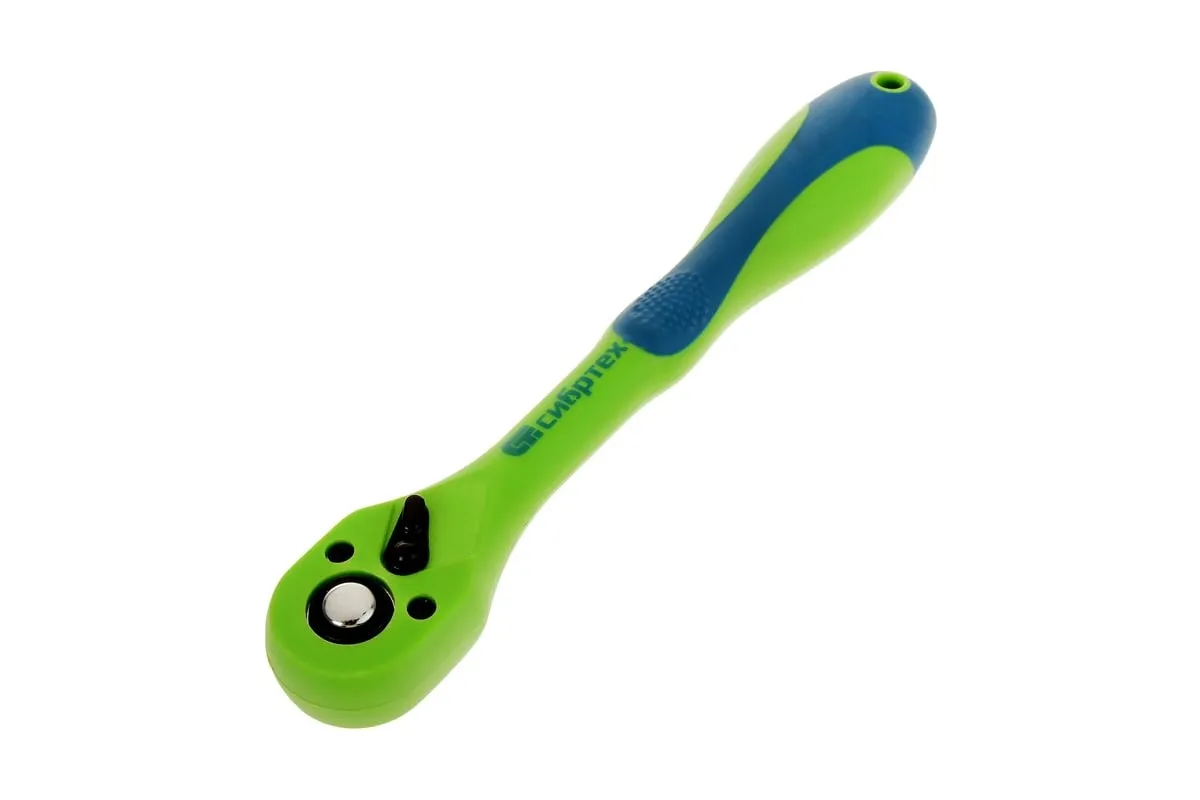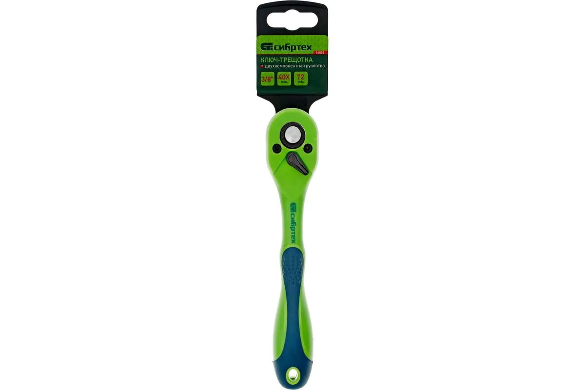 Ключ-трещотка Сибртех 14008 с двухкомпонентной рукояткой и присоединительным квадратом 3/8" используется с торцевыми головками, имеющими посадочное гнездо соответствующего размера. Предназначен для закручивания и раскручивания резьбовых соединений. Храповой механизм с 72 зубцами обеспечивает плавное вращение. Ключ применяется для ремонта автомобилей, техники и оборудования, а также пригодится дома или на даче.