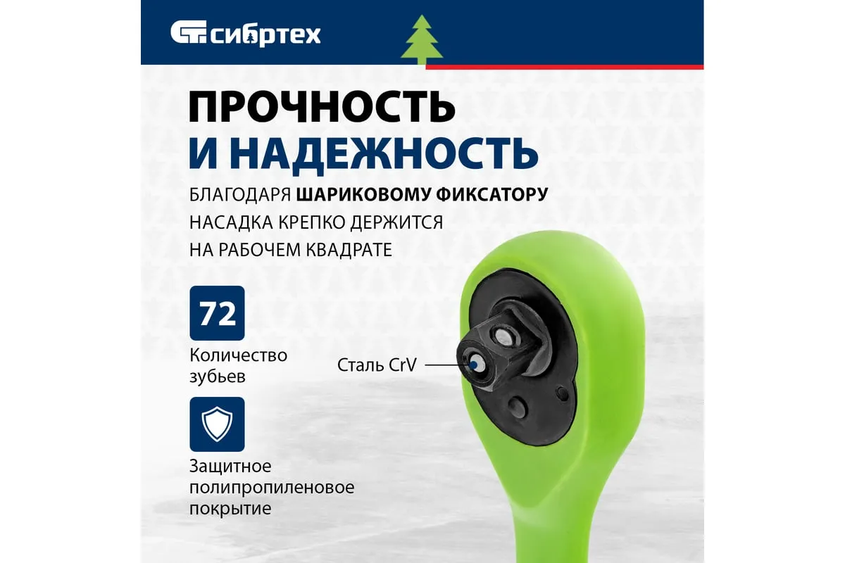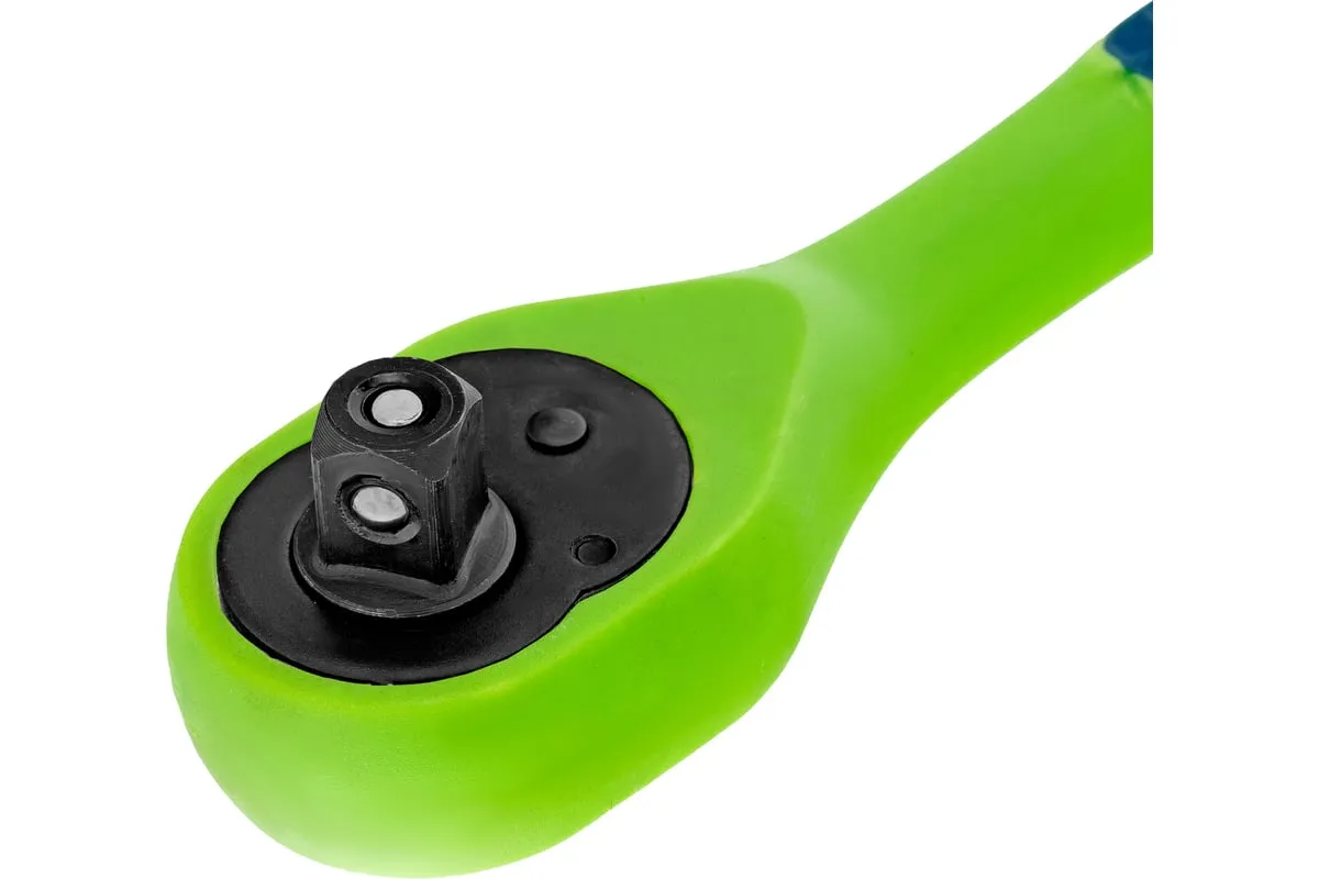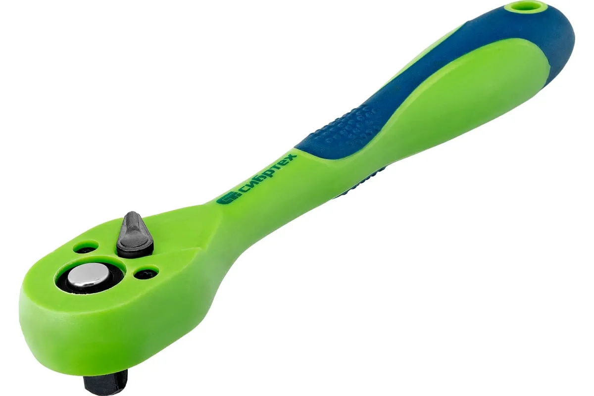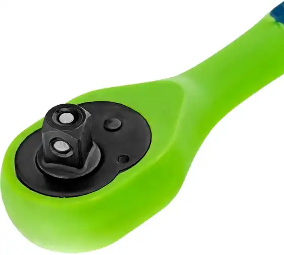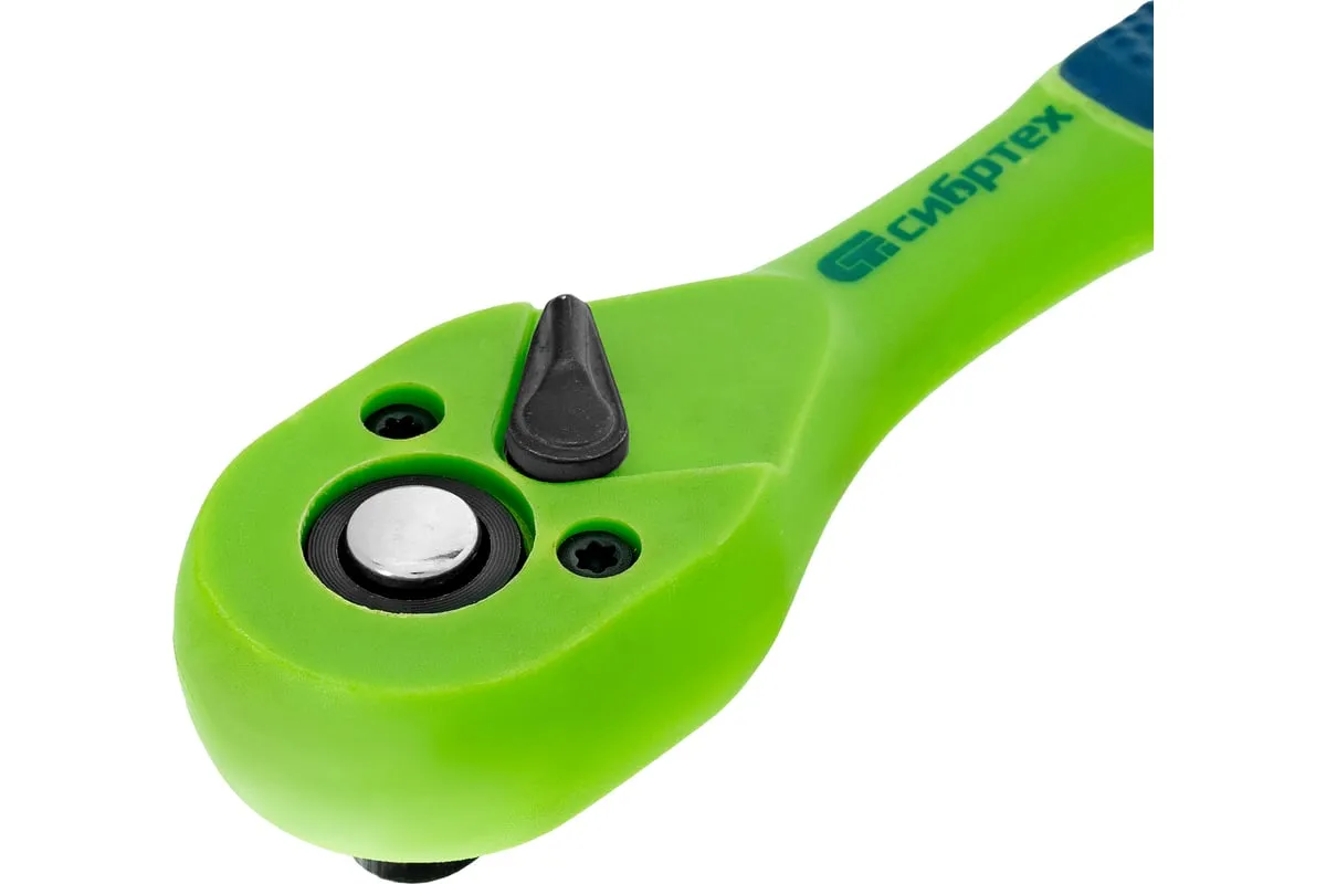 Ключ-трещотка Сибртех 14008 с двухкомпонентной рукояткой и присоединительным квадратом 3/8" используется с торцевыми головками, имеющими посадочное гнездо соответствующего размера. Предназначен для закручивания и раскручивания резьбовых соединений. Храповой механизм с 72 зубцами обеспечивает плавное вращение. Ключ применяется для ремонта автомобилей, техники и оборудования, а также пригодится дома или на даче.