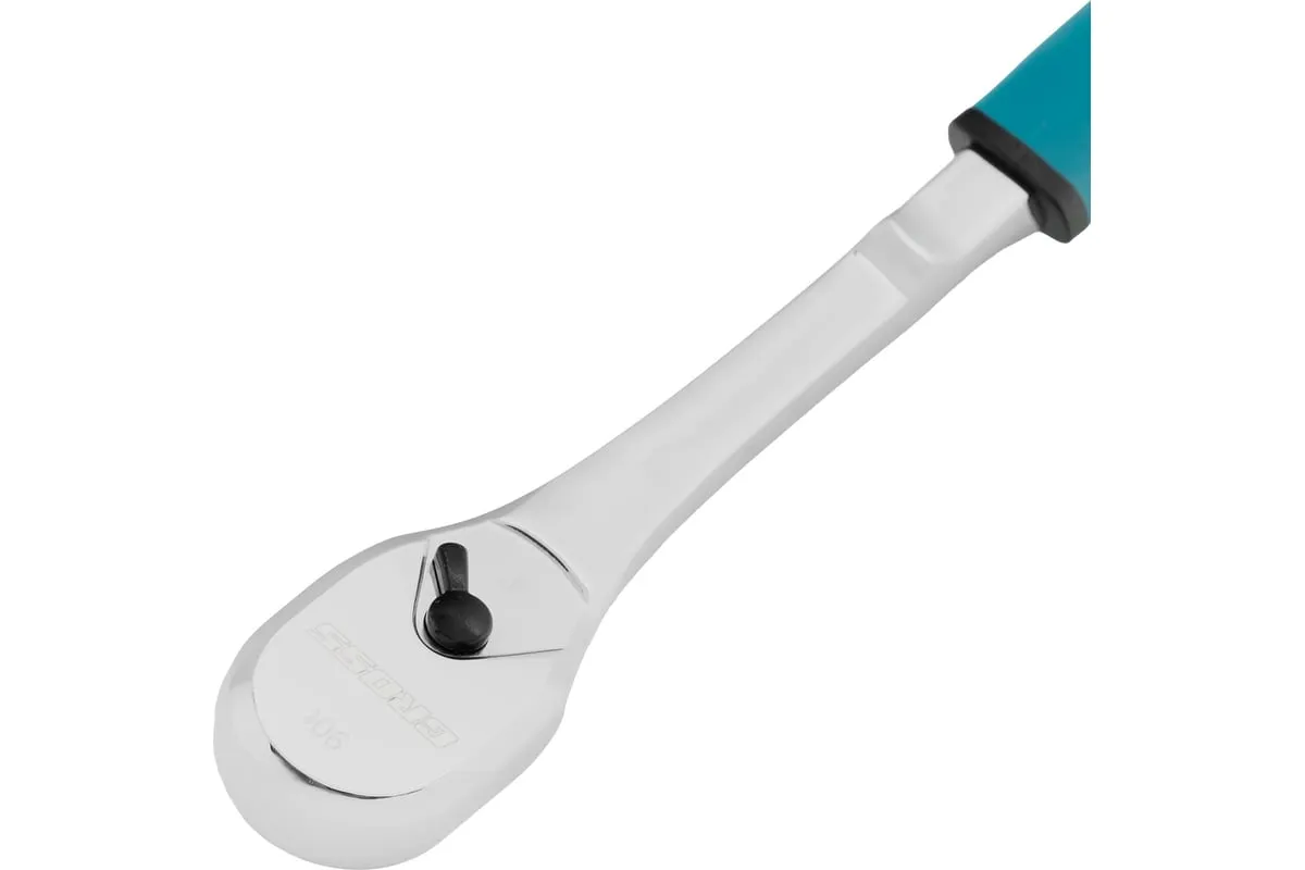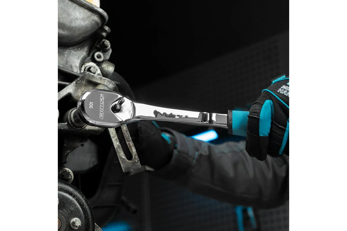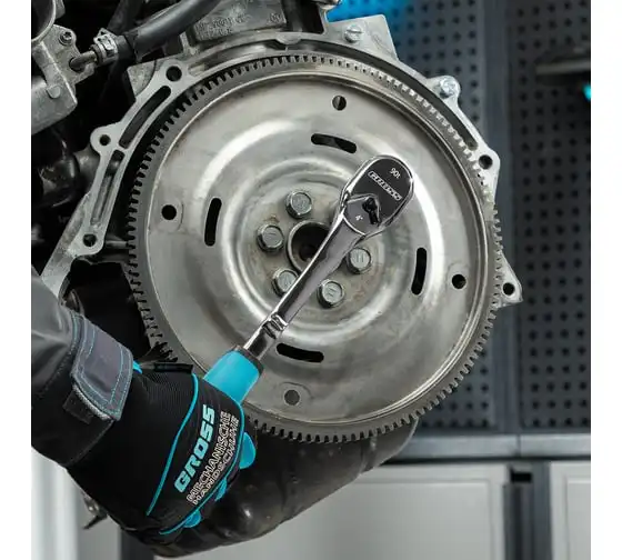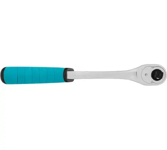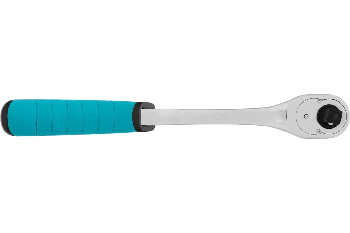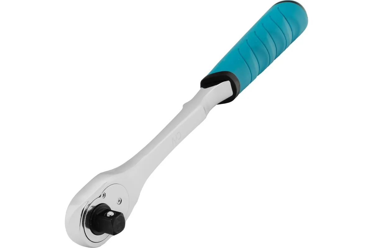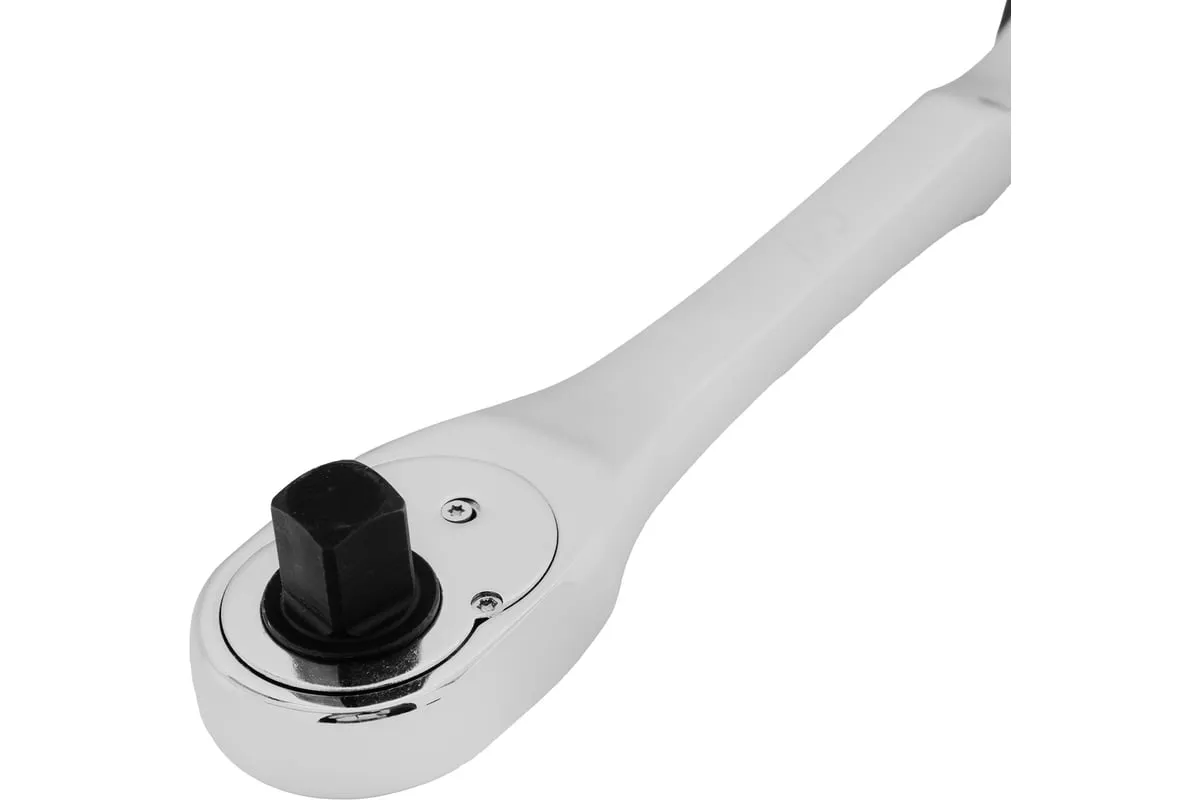 Усиленный ключ-трещотка Gross 14055 с присоединительным квадратом 1/2" оснащен храповым механизмом с 90 зубьями.
