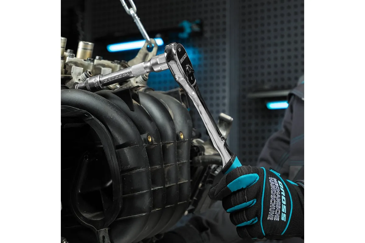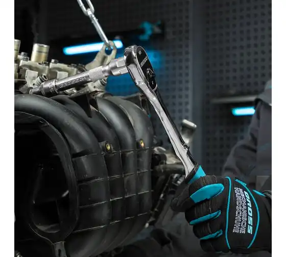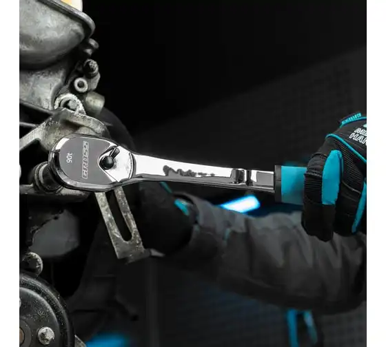 Шаг храпового механизма составляет 4°, поэтому инструмент оптимален для использования в труднодоступных местах.