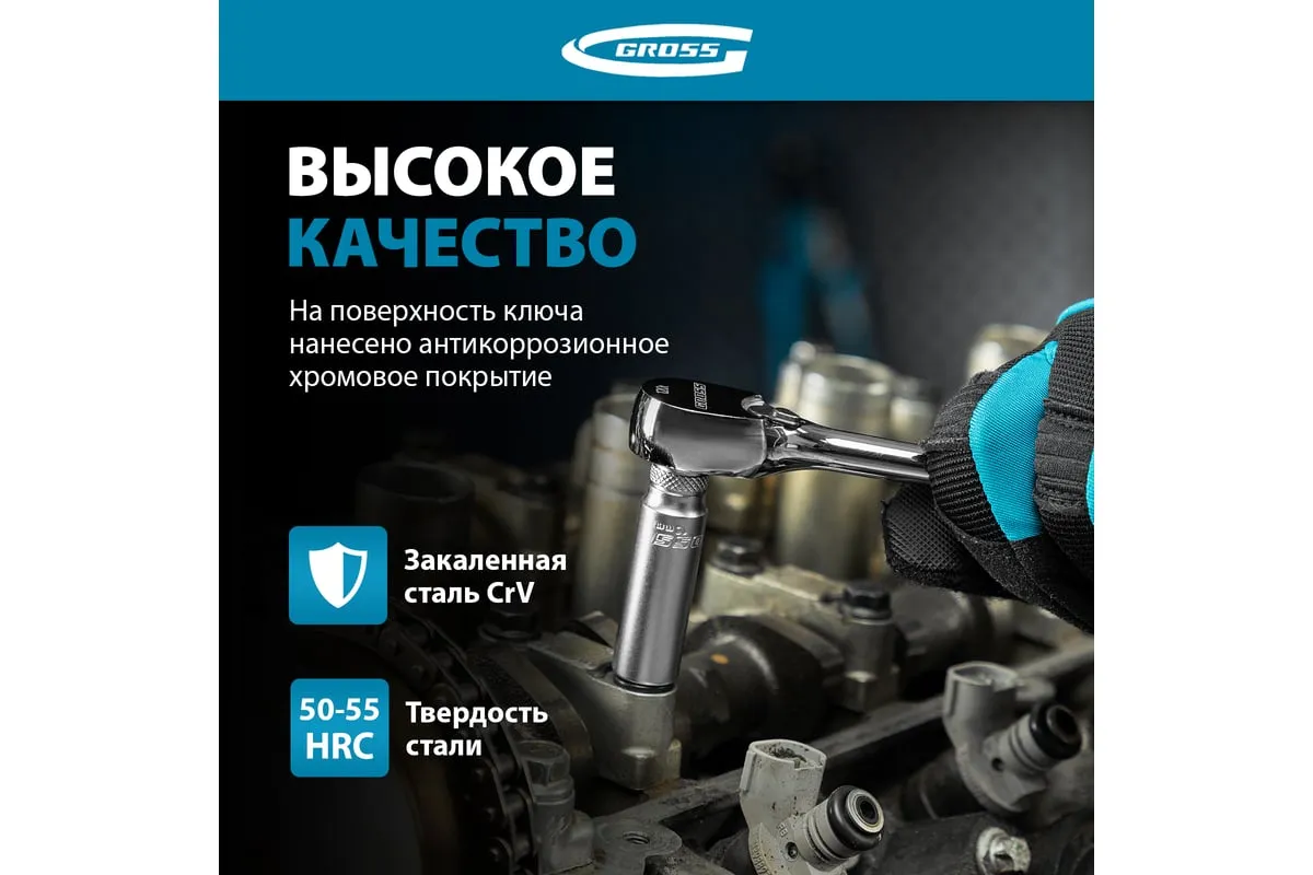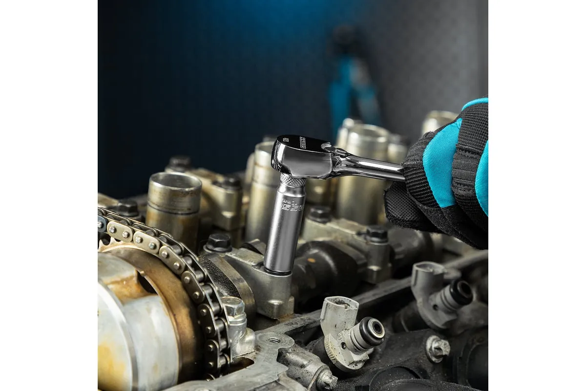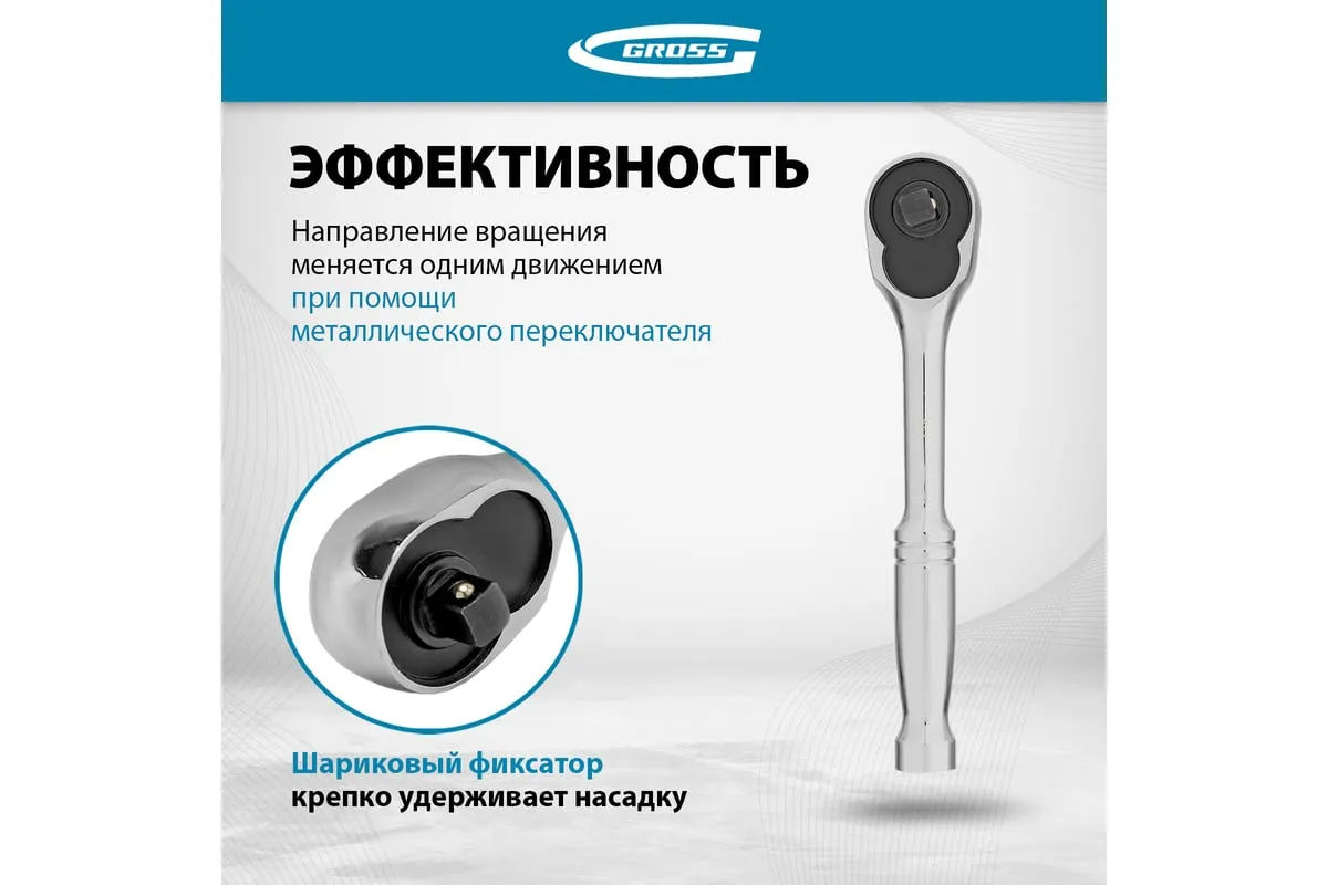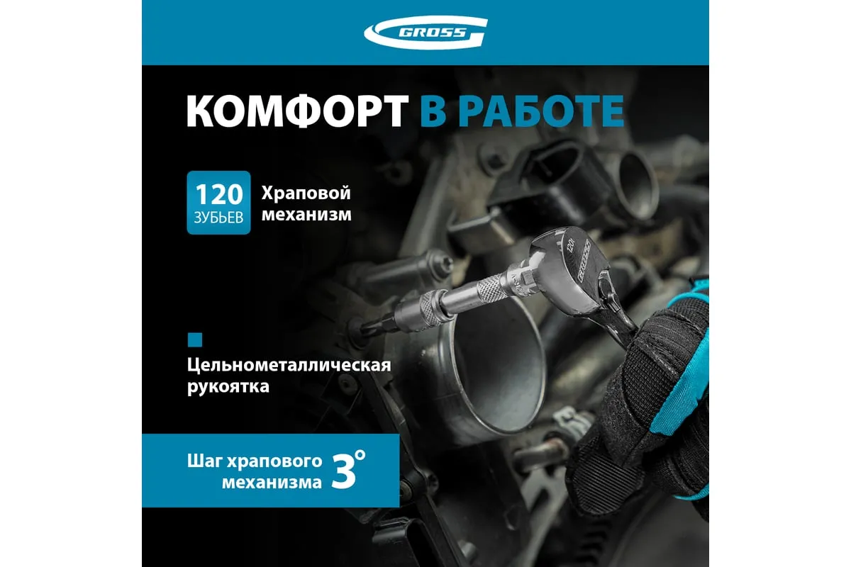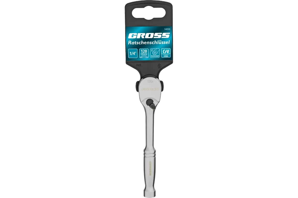 Цельнометаллический ключ-трещотка Gross 14050 с присоединительным квадратом 1/4" оснащен храповым механизмом со 120 зубьями. Предназначен для установки торцевых головок, а также адаптеров и удлинителей с посадочным отверстием соответствующего размера. Шаг храпового механизма составляет 3°, поэтому инструмент оптимален для использования в труднодоступных местах. Будет полезен в сервисном центре, на СТО, а также пригодится дома или в поездке.