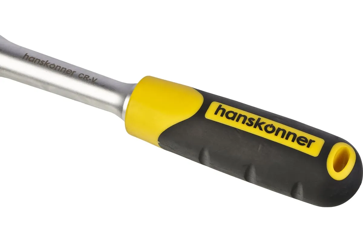 Высокий показатель количества зубьев обеспечивает малый угол поворота (всего 4°), что позволяет работать в ограниченном пространстве, где требуется минимальный ход рукояти. Маслобензостойкая рукоять — идеальное решение для работы в автомастерских. Она устойчива к воздействию масел, бензина и других технических жидкостей, что обеспечивает долговечность инструмента и комфорт при использовании в условиях повышенной загрязненности. Эргономичная рукоять имеет специальную форму для удобного захвата, что снижает усталость при длительной работе. Позволяет быстро менять направление вращения (по часовой стрелке или против), что упрощает закручивание и откручивание крепежей. Прочная конструкция – инструмент изготовлен из высококачественной хромованадиевой стали, что обеспечивает высокую прочность и износостойкость.