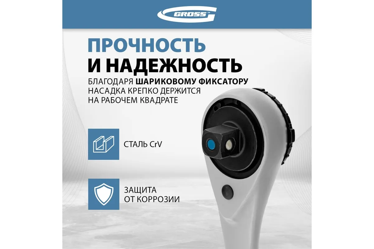 Трещоточный ключ Gross 14136 с присоединительным квадратом 3/8 дюйма предназначен для работ с резьбовыми соединениями. Храповый механизм со 120 зубцами обеспечивает исключительно плавный ход. Инструмент оптимален для работы с труднодоступными крепежами — шаг трещотки составляет всего 3 градуса. Ключ подойдет для ремонта компактной техники, велосипедов, монтажа оборудования, пригодится также дома, в гараже или на даче.