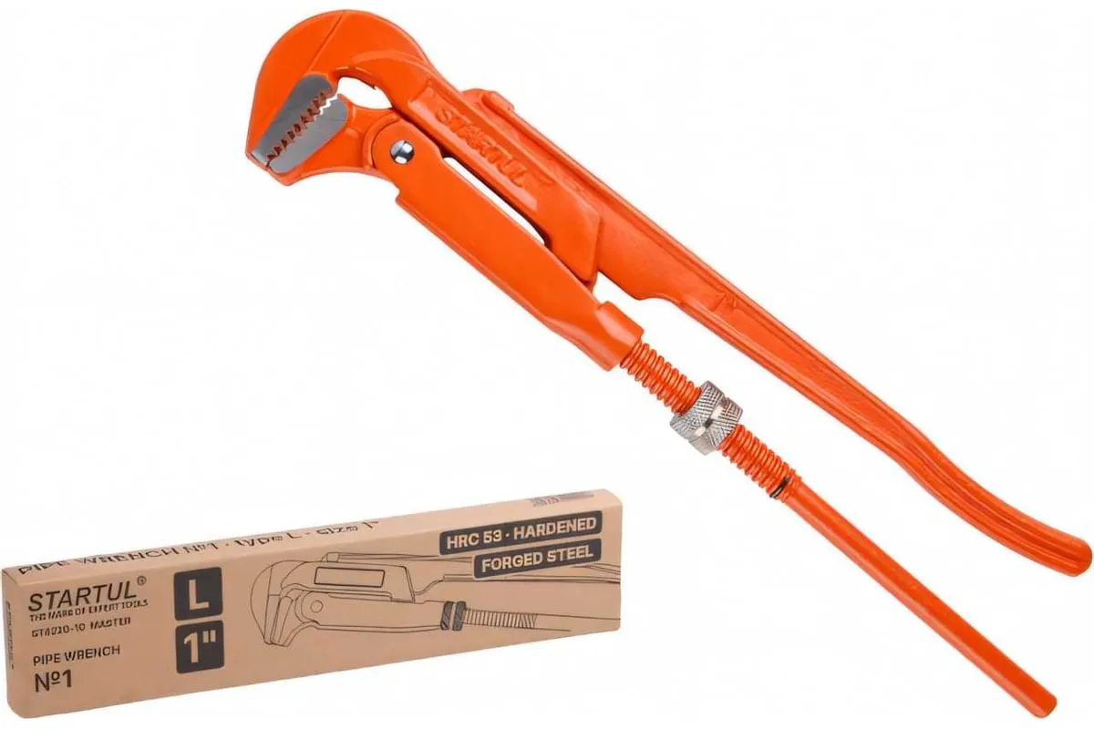 Ключ трубный предназначен для монтажа и демонтажа соединительных частей трубопровода. Твердость губок составляет 53 HRC. Угол губок 90°С.