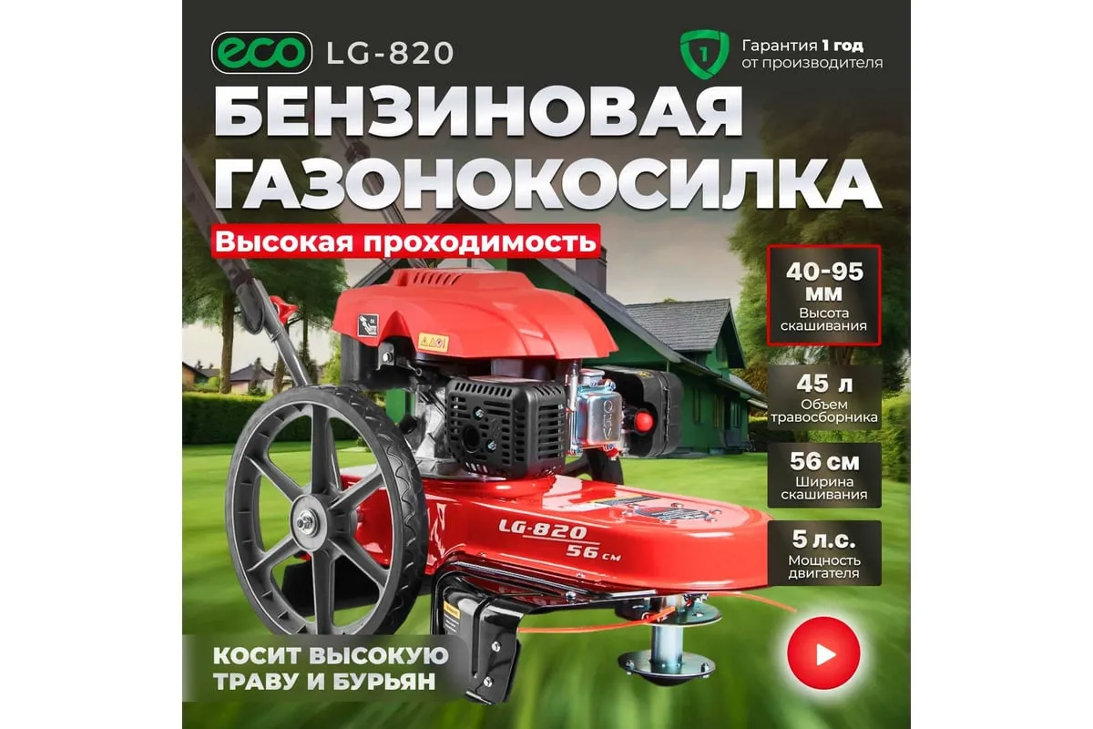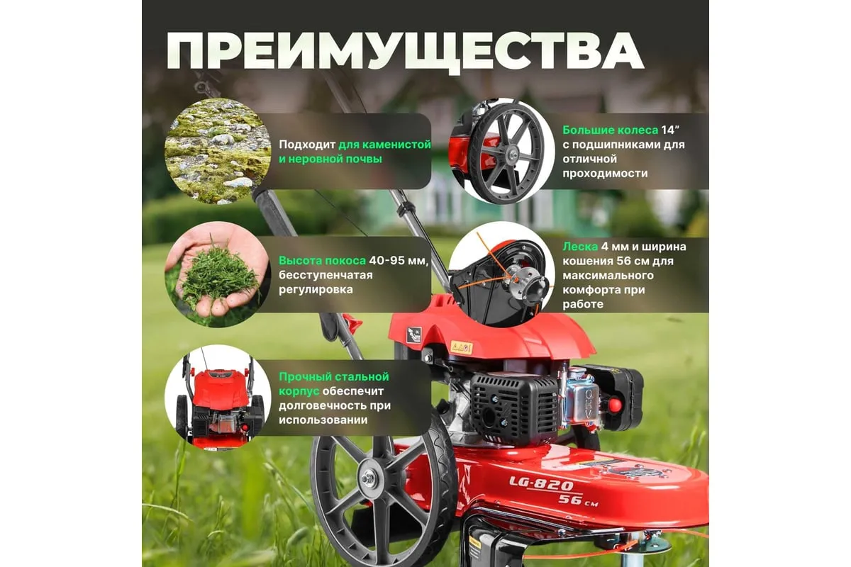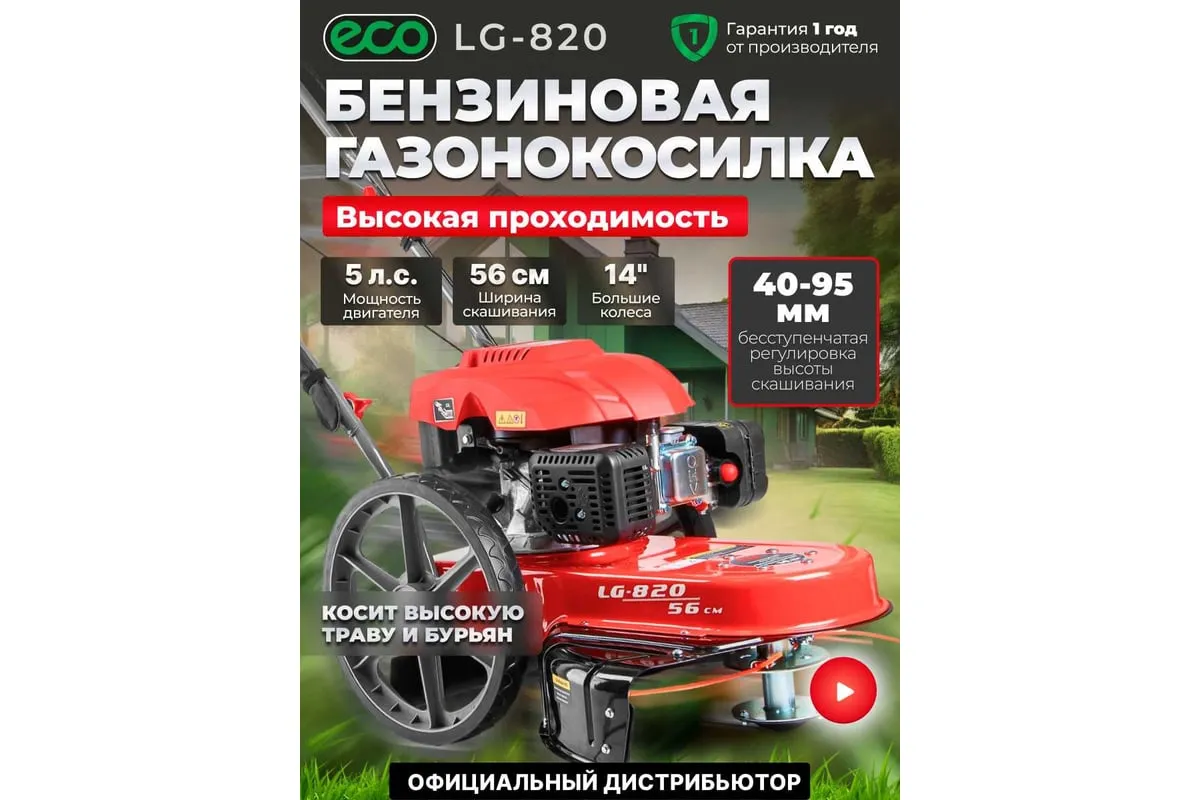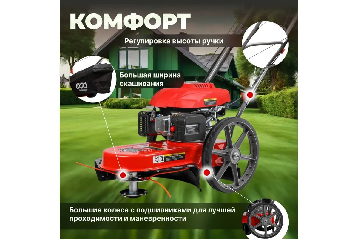 Колесный триммер ECO LG-820 EC1553-7 предназначена для кошения высокой травы и бурьяна.