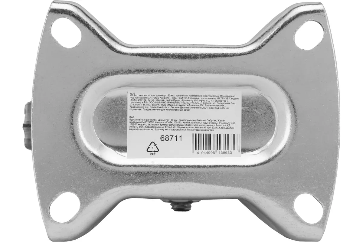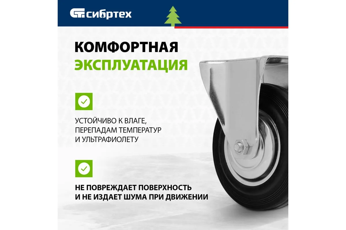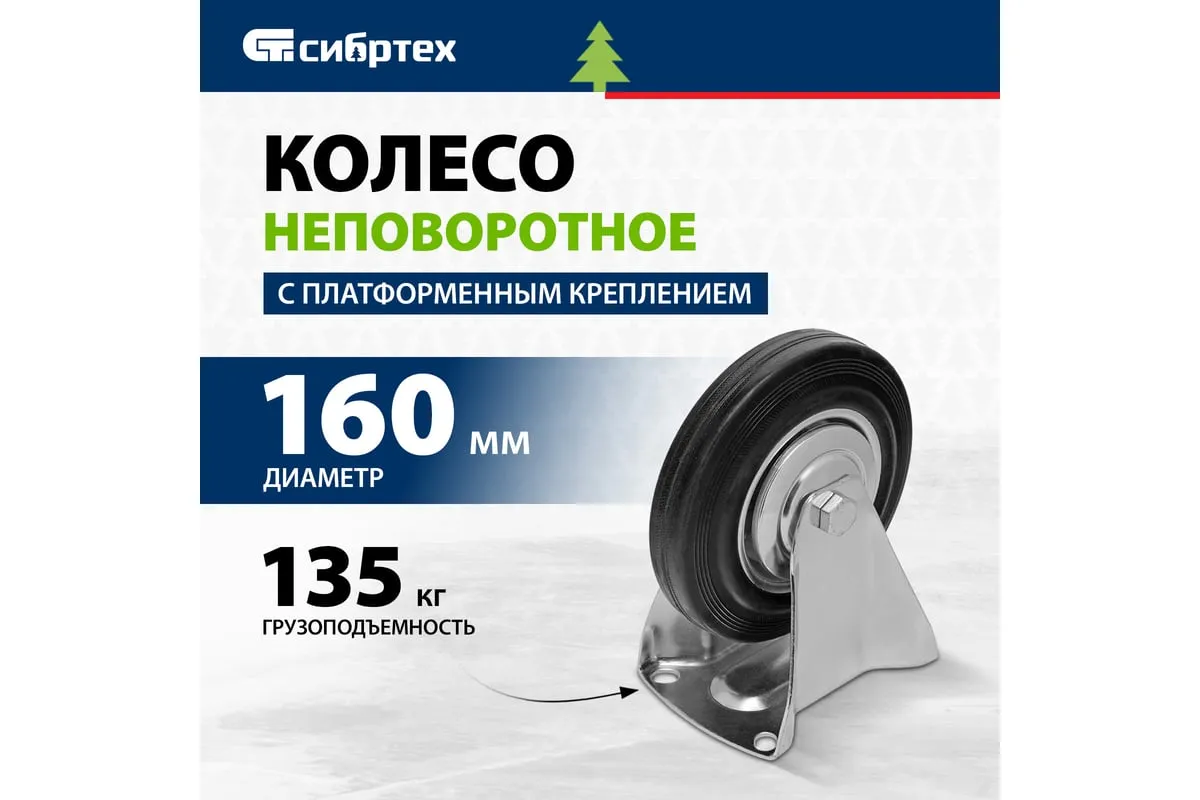 Колесо неповоротное Сибртех 68711 диаметром 160 мм с платформенным креплением обладает грузоподъемностью 135 кг и устанавливается на ручные тележки. Устойчиво к влаге, перепадам температур и ультрафиолету, поэтому может использоваться в любых атмосферных условиях. Колесо служит для перемещения грузов по прямолинейной траектории в производственных и складских помещениях, а также под открытым небом.
