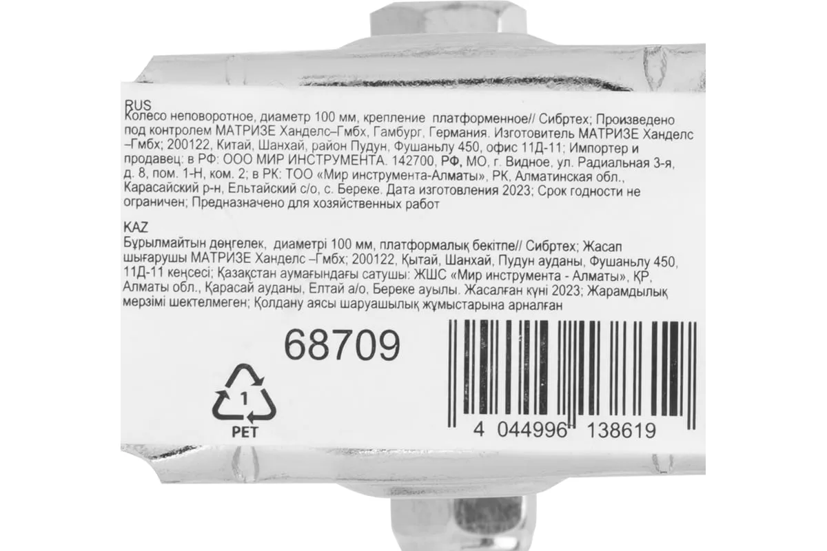 Колесо неповоротное d-100мм крепление платформенное СИБРТЕХ 68709 устанавливается на ручные тележки с высокой грузоподъемностью. Изготовлено из качественных материалов, прослужат долгое время. Данное колесо подходит для использования при температурах от -25 °С до +50 °С.