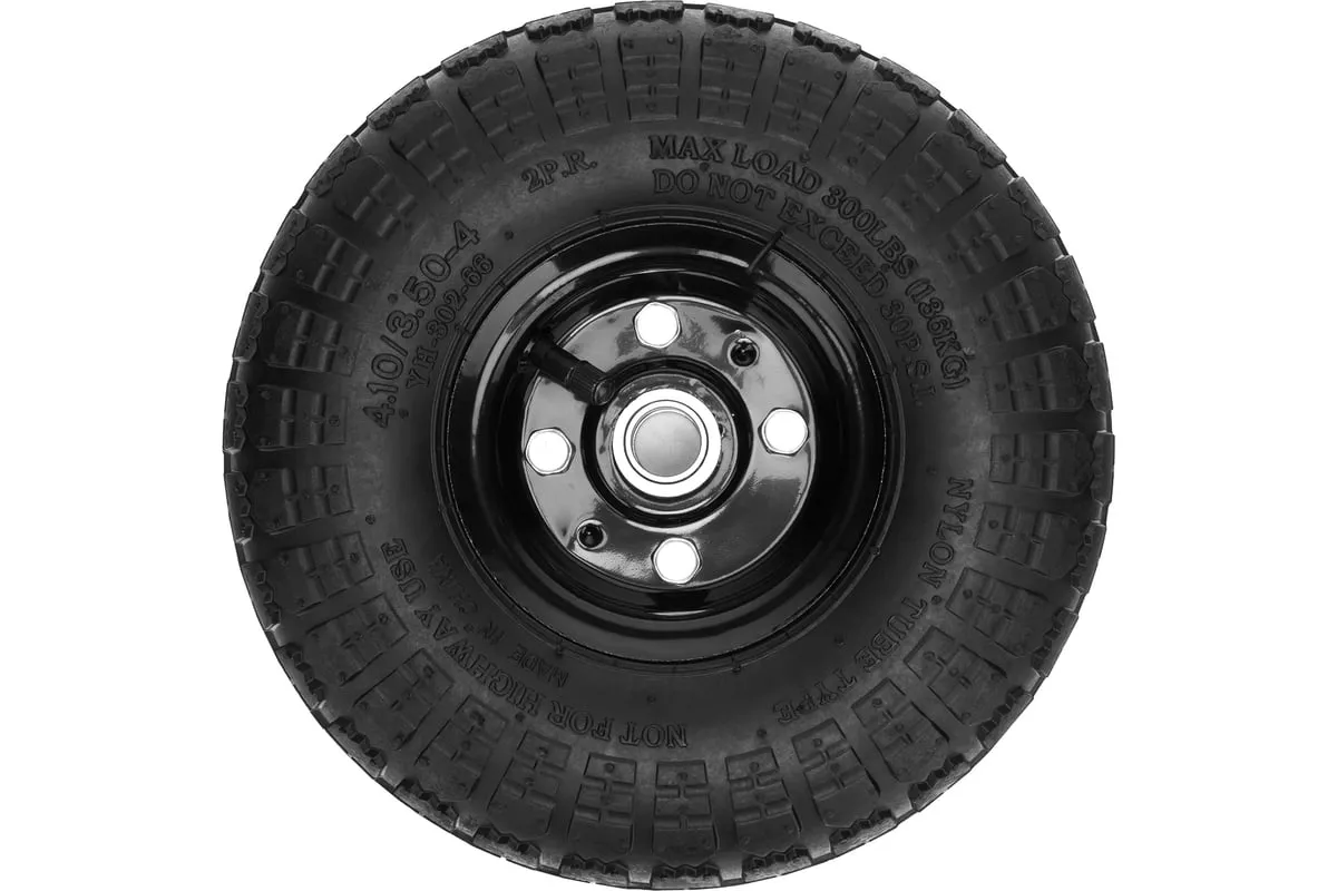 Пневматическое колесо 4,10/3,50-4 с несимметричной ступицей Palisad 68970 диаметром 260 мм, на подшипниках, имеет посадочный диаметр 20 мм, длину оси 50 мм и устанавливается на тележки, например, Сибртех 68931 и 68944, а также другие подходящие модели. Обеспечивает плавный ход тележки и удобную транспортировку грузов. Колесо со стальными шариковыми подшипниками легко преодолевает препятствия и выдерживает высокие нагрузки.