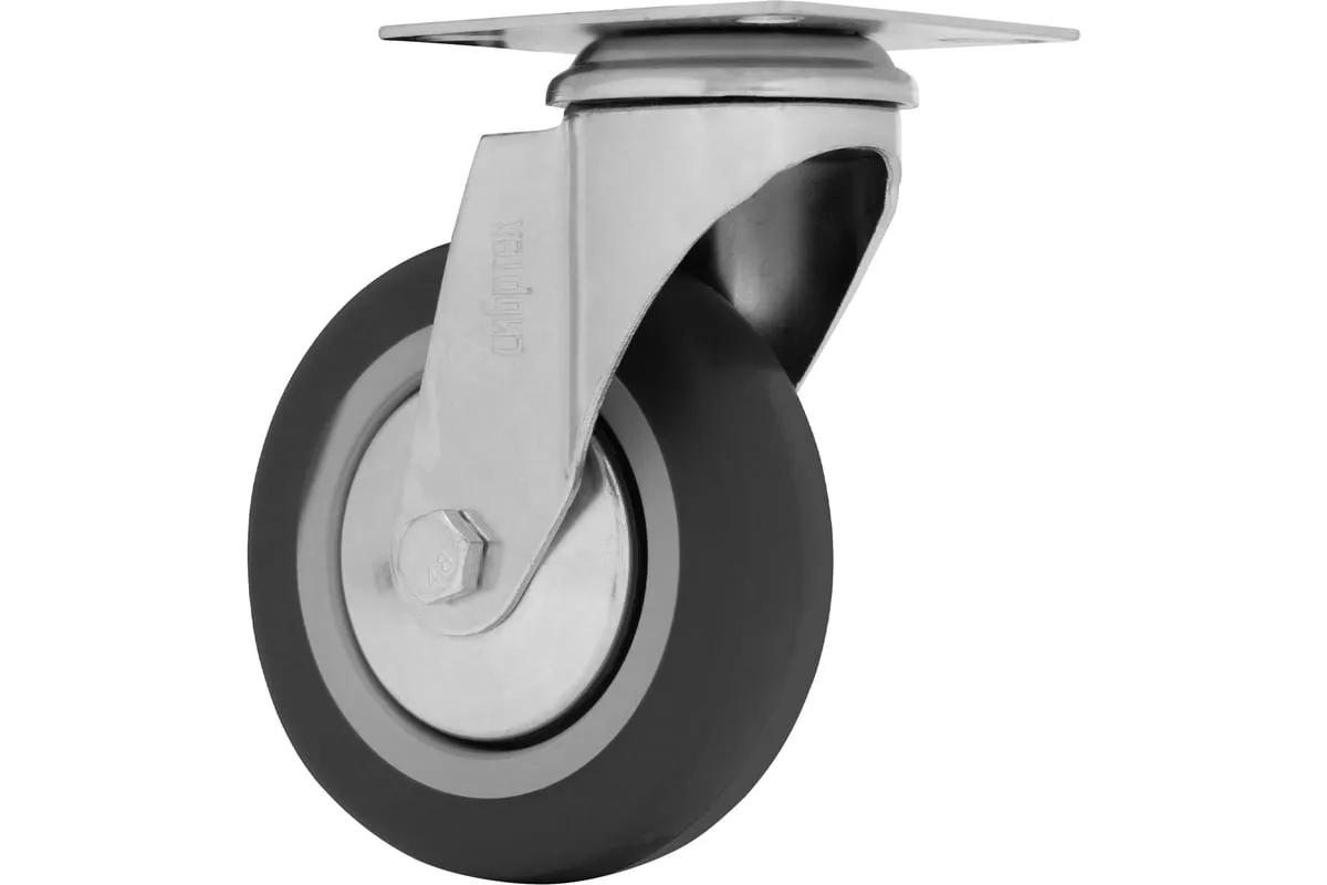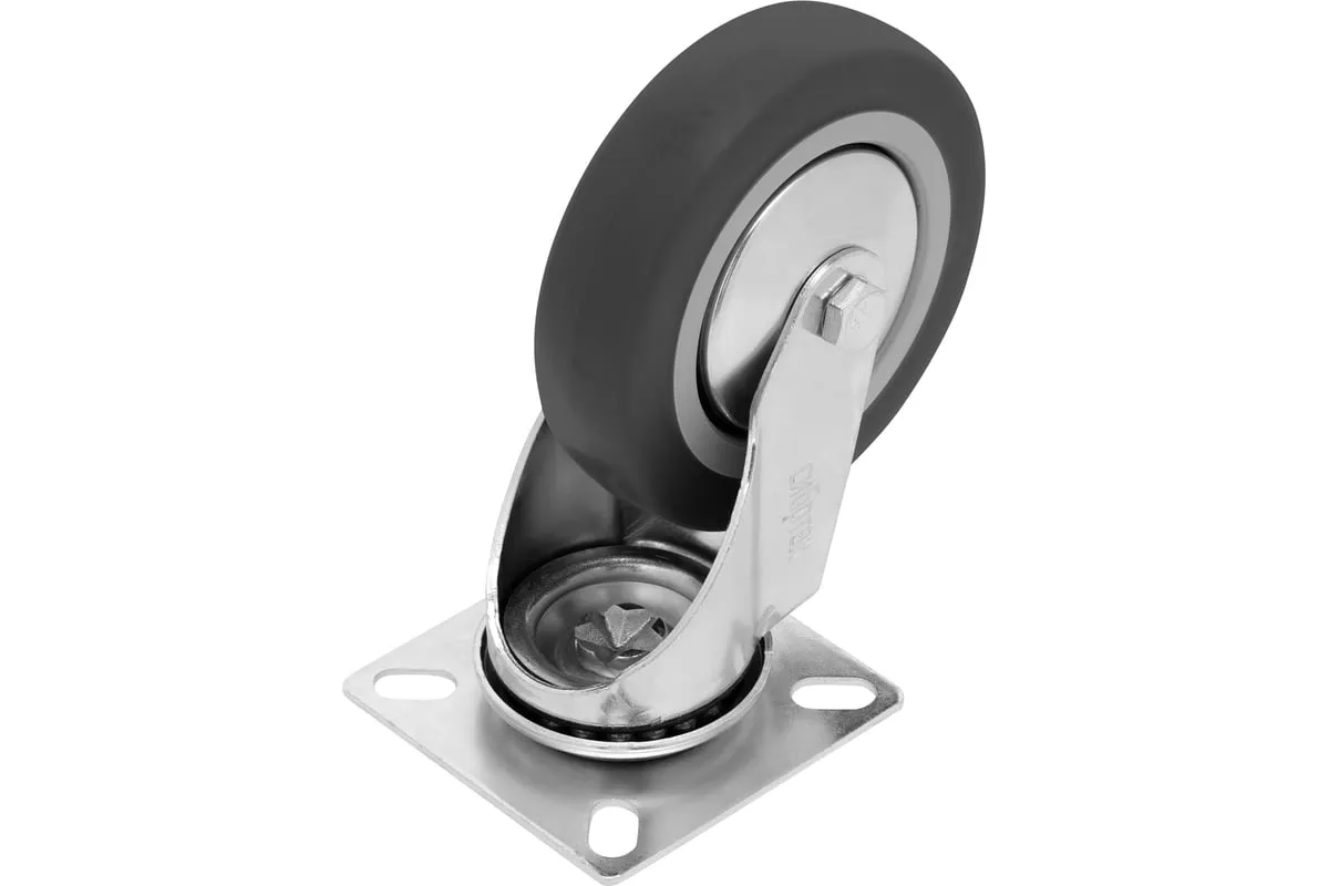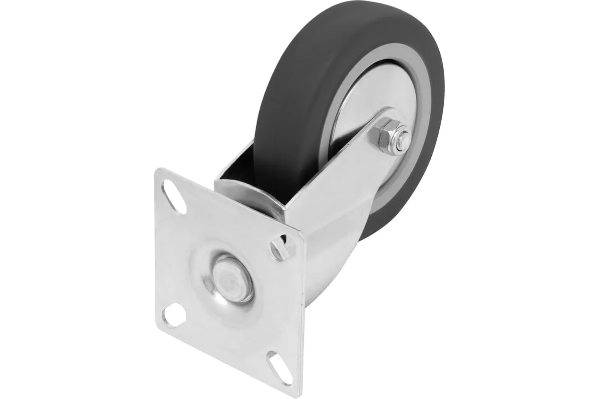 Колесо поворотное d-100мм крепление платформенное СИБРТЕХ 68715 устанавливается на ручные тележки с высокой грузоподъемностью. Изготовлено из качественных материалов, прослужат долгое время. Данное колесо подходит для использования при температурах от -25 °С до +50 °С.