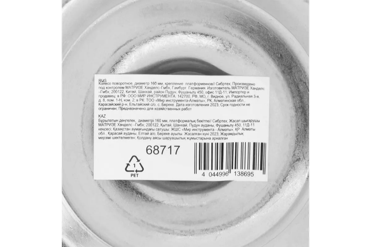 Поворотное колесо Сибртех 68717 диаметром 160 мм и платформенным креплением имеет грузоподъемность 160 кг и устанавливается на ручные промышленные тележки. Выдерживает температуру от -25 до +50 градусов, устойчиво к воздействию ультрафиолета и влаги, поэтому подходит для эксплуатации как внутри помещения, так и снаружи. Поворотный механизм облегчает маневрирование. Колесо используется для перемещения грузов на производстве или на складах.