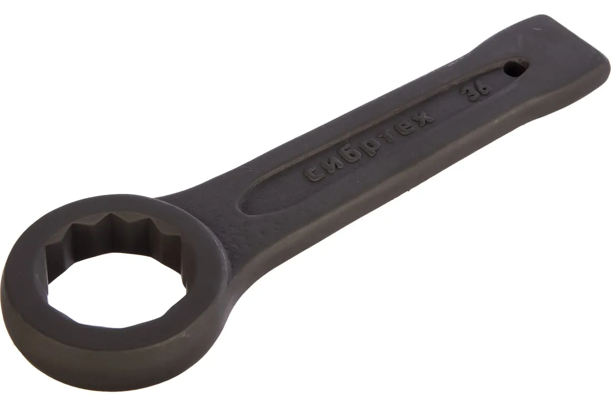 Кольцевой ударный ключ Сибртех 14275, 36 мм, позволяет откручивать и закручивать резьбовые соединения соответствующего размера. Он имеет 12-гранный профиль, за счет чего надежно удерживает головку крепежа. Инструмент удобен для работы в ограниченном пространстве — для перестановки его достаточно повернуть на 30 градусов. Ключ применяется в слесарных мастерских, будет полезен во время ремонта, а также для решения бытовых задач.