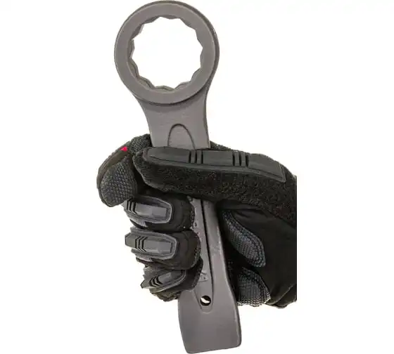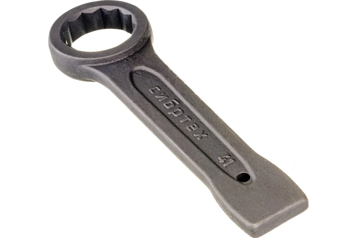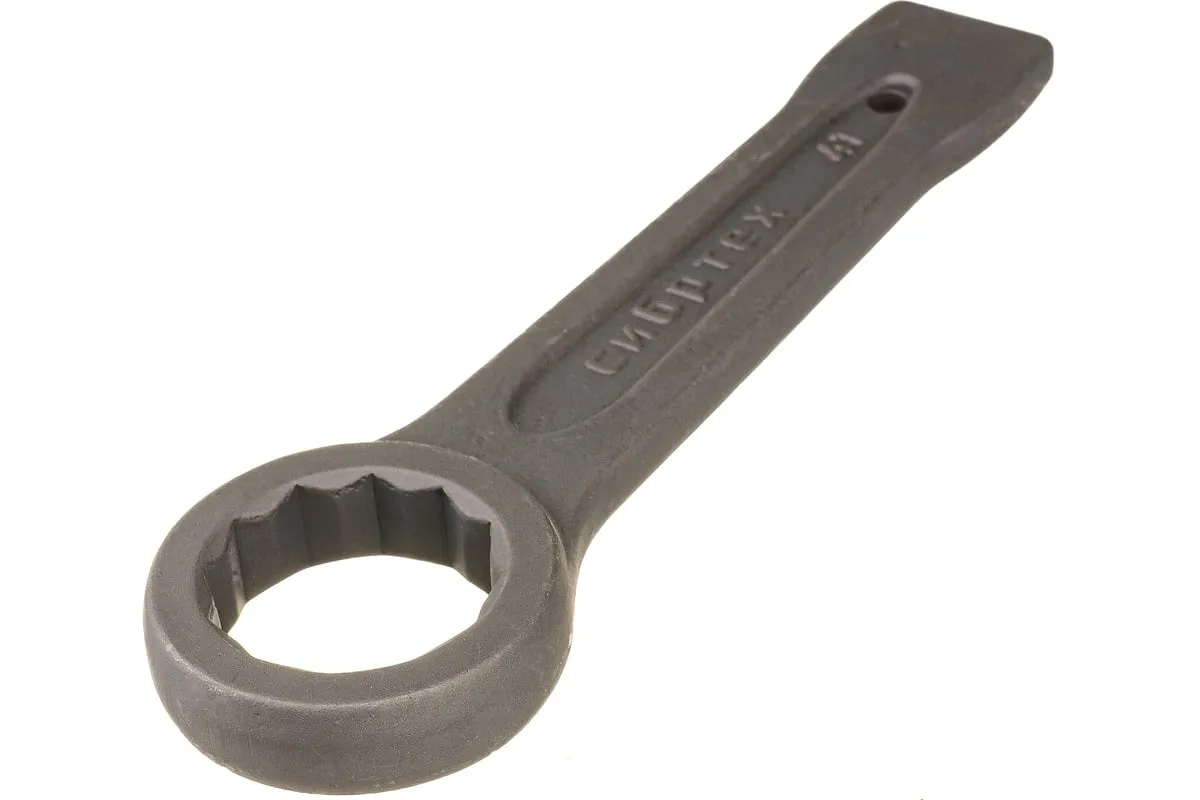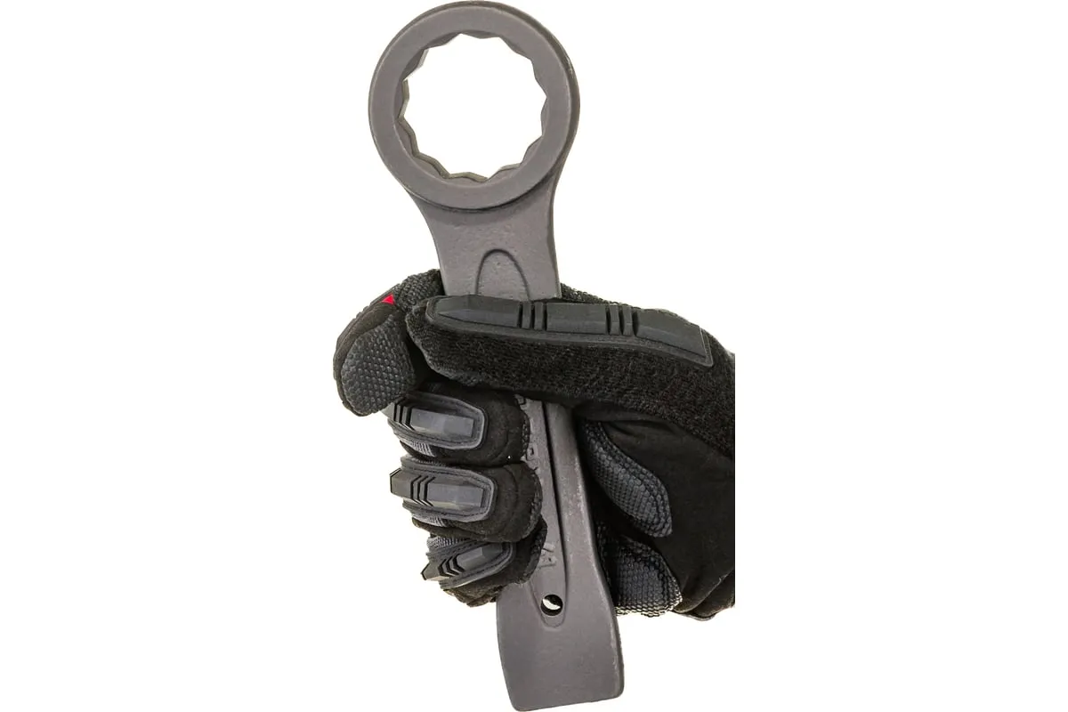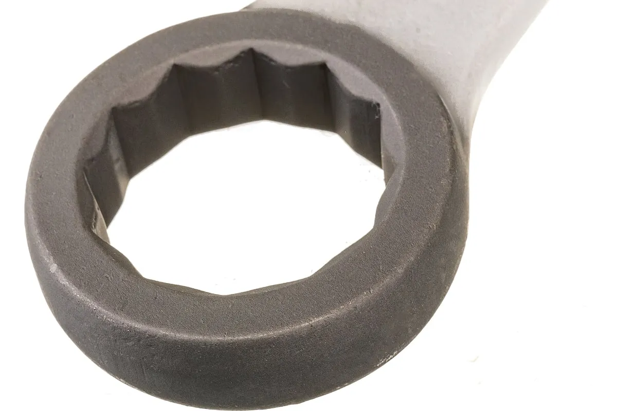 Кольцевой ударный ключ позволяет откручивать и закручивать резьбовые соединения соответствующего размера. Он имеет 12-гранный профиль, за счет чего надежно удерживает головку крепежа. Инструмент удобен для работы в ограниченном пространстве — для перестановки его достаточно повернуть на 30 градусов. Ключ применяется в слесарных мастерских, будет также полезен во время ремонта оборудования или автомобилей.