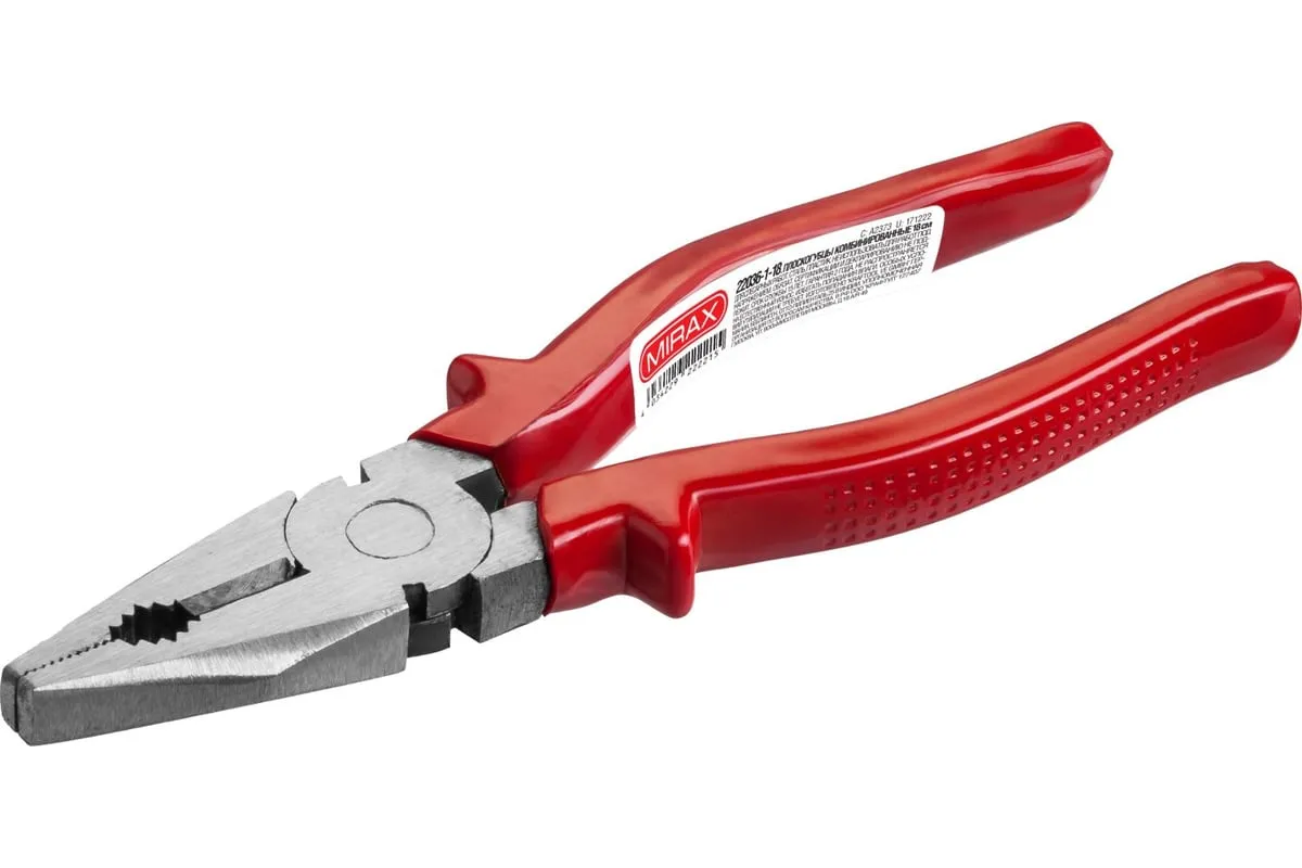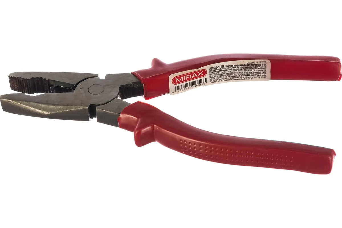 Комбинированные плоскогубцы MIRAX 180 мм 22036-1-18 представляет собой надежный инструмент для монтажных и слесарных работ. Имеет пластиковые рукоятки. Рабочая часть инструмента закалена в масле. Отличается долгим сроком службы.