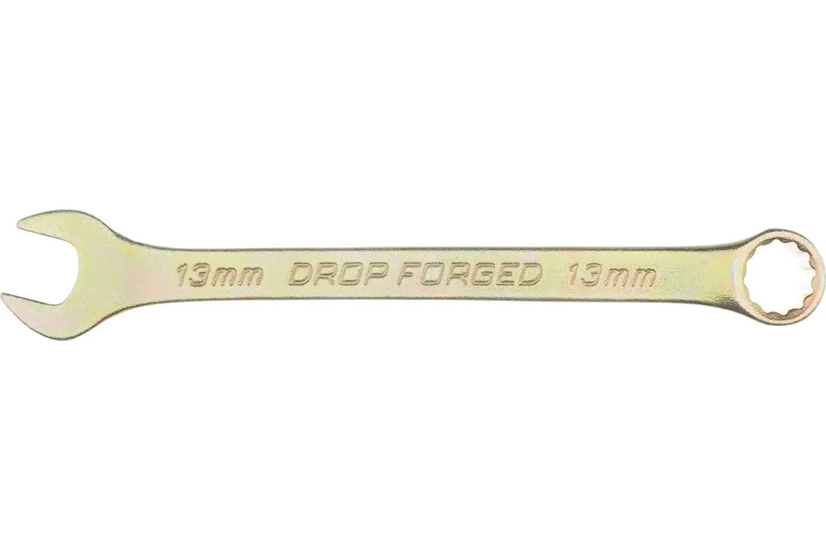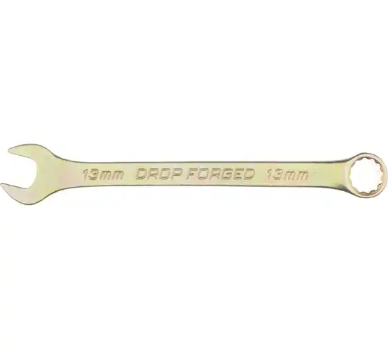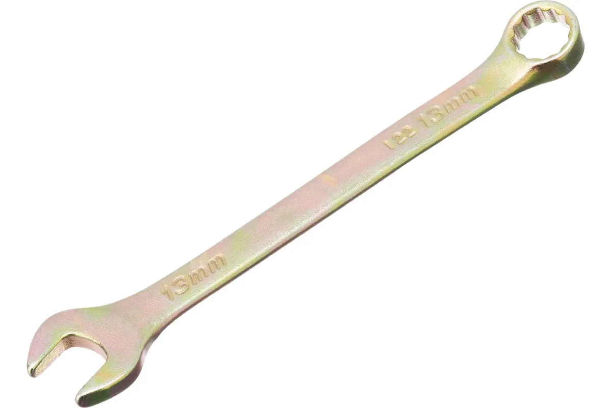 Комбинированный ключ Сибртех 14979, 13 мм, покрытый желтым цинком, предназначен для слесарно-монтажных работ с резьбовыми соединениями. Наличие рожкового и кольцевого зева делает ключ универсальным в применении. Накидная головка с 12-гранным профилем надежно удерживает крепеж, уменьшая риск его деформации. Ключ будет полезен при проведении строительных и ремонтных работ, пригодится для сборки и разборки оборудования, а также необходим в быту.