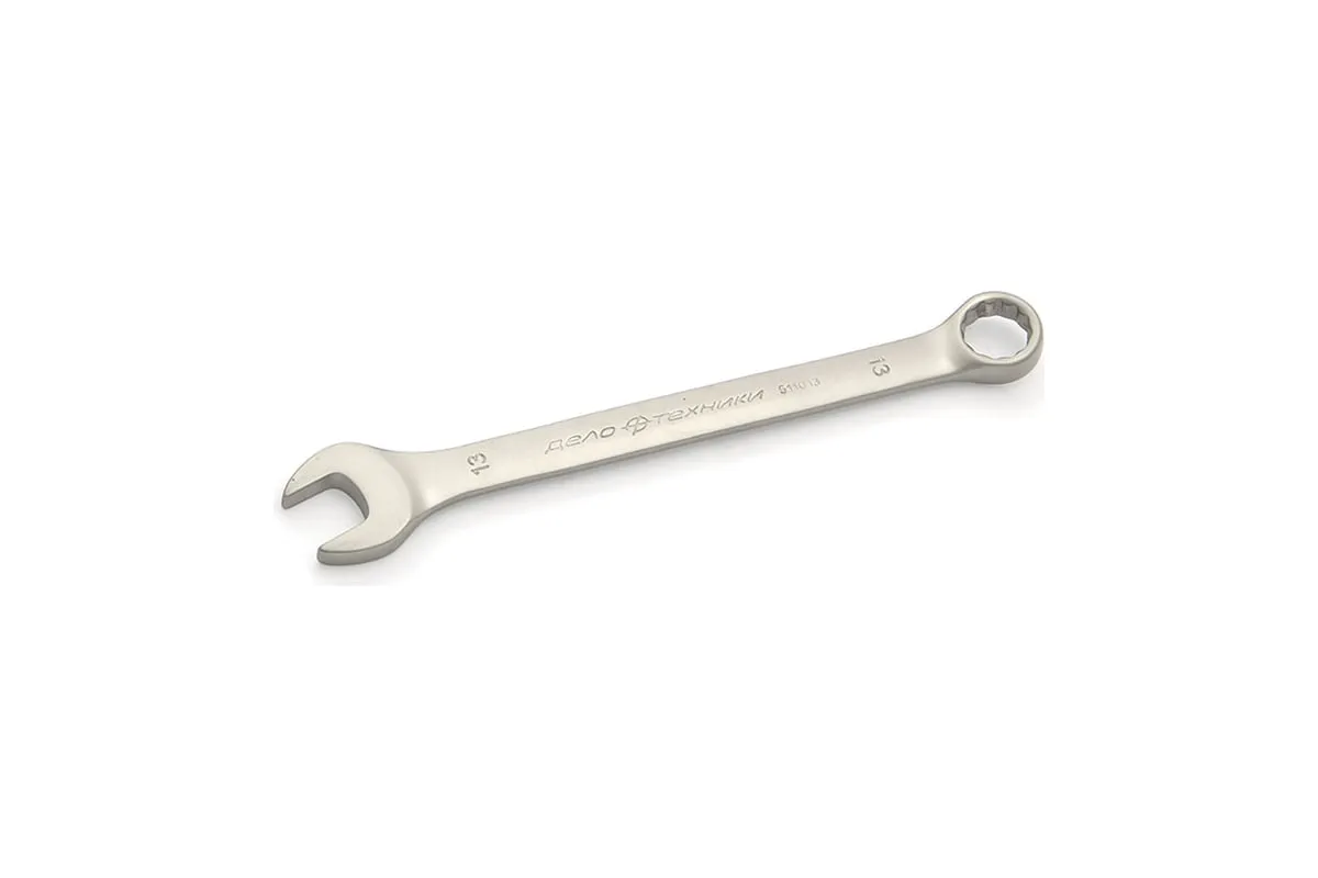 Комбинированный ключ 13мм Дело Техники 511013 - популярный тип гаечного ключа, который совмещает в своей конструкции одновременно открытый и кольцевой зевы. Изделие изготовлено из качественной стали, не боится коррозии и прослужит очень долгий срок.