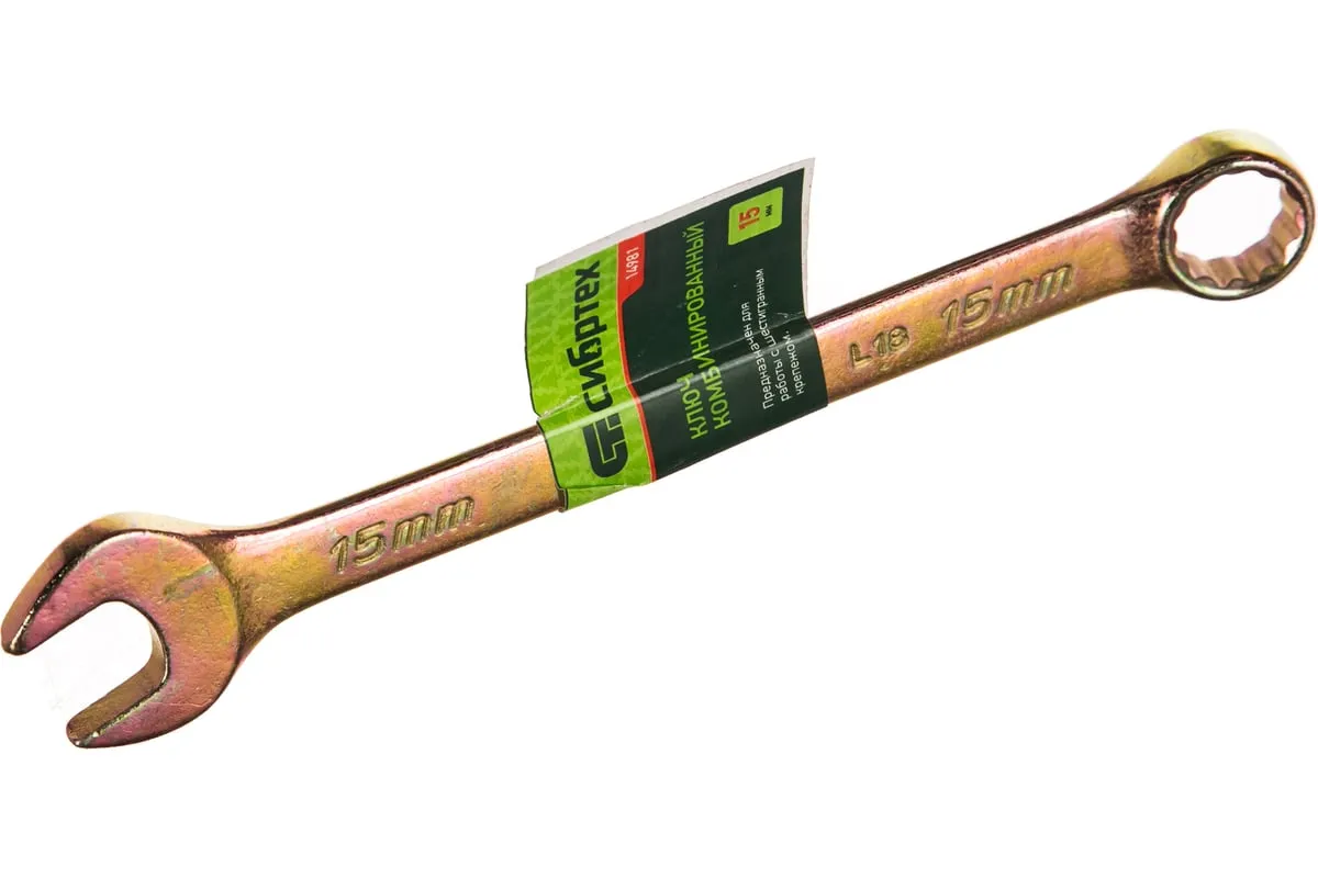 Комбинированный ключ Сибртех 14981, 15 мм, покрытый желтым цинком, предназначен для слесарно-монтажных работ с резьбовыми соединениями. Наличие рожкового и кольцевого зева делает ключ универсальным в применении. Накидная головка с 12-гранным профилем надежно удерживает крепеж, уменьшая риск его деформации. Ключ будет полезен при проведении строительных и ремонтных работ, пригодится для сборки и разборки оборудования, а также необходим в быту.