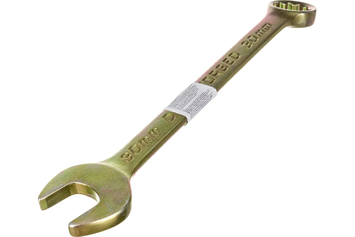 Комбинированный ключ Сибртех 14988, 30 мм, покрытый желтым цинком, предназначен для слесарно-монтажных работ с резьбовыми соединениями. Наличие рожкового и кольцевого зева делает ключ универсальным в применении. Накидная головка с 12-гранным профилем надежно удерживает крепеж, уменьшая риск его деформации. Ключ будет полезен при проведении строительных и ремонтных работ, пригодится для сборки и разборки оборудования, а также необходим в быту.