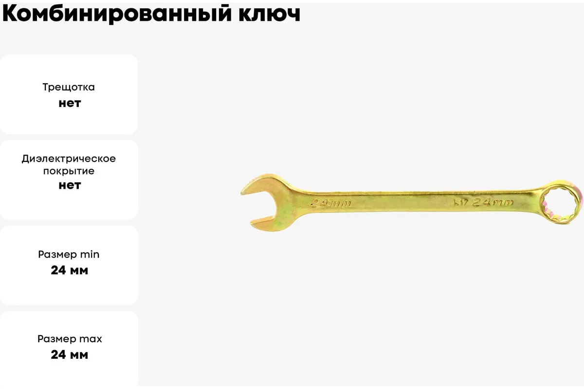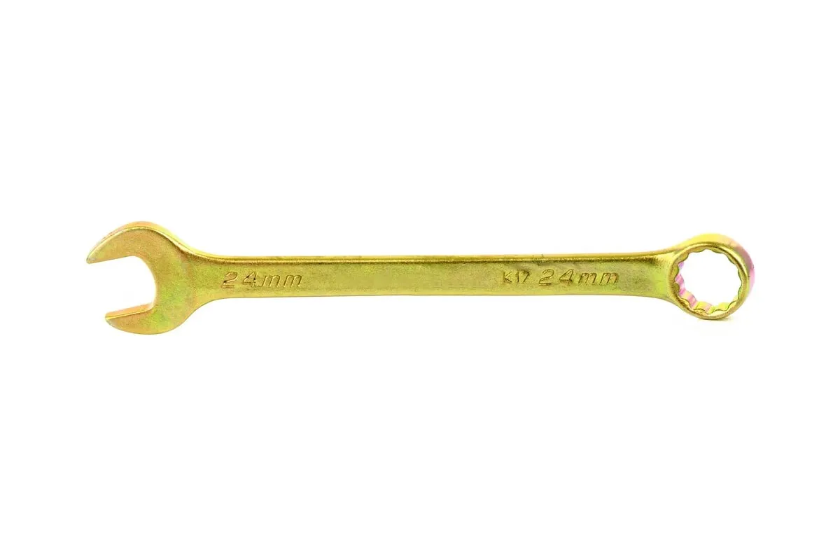 Комбинированный ключ СИБРТЕХ 24 мм 14986 применяется при монтаже или демонтаже резьбовых соединений, имеющих шестигранные рабочие профили. Накидная головка с двенадцатигранным рабочим профилем обеспечивает минимальный риск деформации граней крепежа. Кольцевой зев имеет угол наклона в 15 градусов, что позволяет работать в труднодоступных местах.